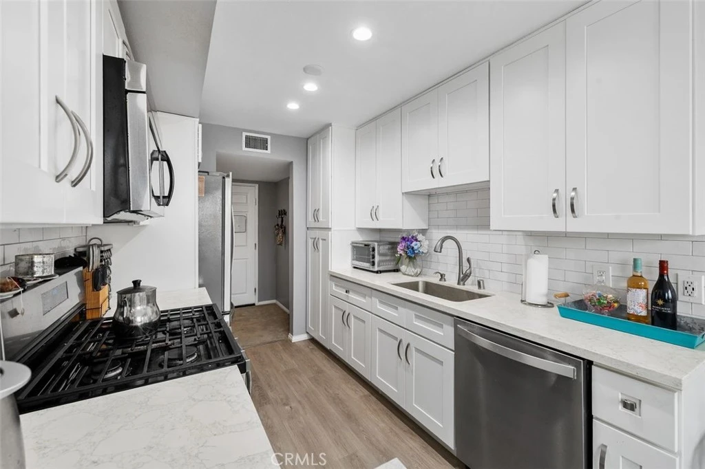 Welcome to Unit 239 at 4501 Cedros Avenue, a beautifully remodeled 2-bedroom, 2-bathroom residence offering 1,151 square feet of stylish living space in the heart of Sherman Oaks. Remodeled in 2020, this light and bright unit is filled with natural sunlight through large dual-pane windows, complemented by elegant plantation shutters throughout. The open living and dining areas create an inviting atmosphere ideal for both everyday living and entertaining. The modern kitchen features quartz countertops, classic subway tile backsplash, soft-closing cabinetry, and sleek Whirlpool appliances, blending timeless design with everyday functionality. The spacious primary suite offers a vanity dressing area and dual access to the primary bathroom, providing both privacy and convenience. Both bathrooms are thoughtfully updated with clean, contemporary finishes. Residents enjoy resort-style community amenities including a sparkling pool, fully equipped gym, and recreation room. Ideally located near shops, dining, and entertainment, this move-in-ready condo offers comfort, style, and convenience in one of Sherman Oaks’ most desirable locations.