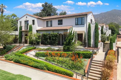 Rare end-unit townhome with mountain views and a private backyard retreat in the heart of Sierra Madre, just moments from downtown shops, restaurants, and the Sierra Madre Public Library. This light-filled Victorian-style residence offers beautiful hardwood floors throughout, timeless architectural charm, and an inviting indoor-outdoor lifestyle. The welcoming main level features a spacious living room with fireplace, plantation shutters, and abundant natural light. The inviting dining area showcases picturesque bay windows and custom built-in cabinetry, creating an ideal space for entertaining. The kitchen offers tall cabinetry, generous pantry storage, and designer countertops. A sliding glass door opens to a private deck that leads down to a fully enclosed backyard—perfect for relaxing or enjoying Southern California’s indoor-outdoor living. Upstairs, the expansive primary suite features its own fireplace, walk-in closet, and tranquil treetop views. Both bathrooms have been beautifully renovated with quartz countertops and elegant tile finishes. A spacious secondary bedroom enjoys mountain views and convenient access to the updated guest bath. The ground level includes an attached two-car garage and approximately 250 sq ft of bonus space currently configured with built-in storage and laundry, offering flexibility for a home office, gym, hobby room, or creative studio. Morgan Court is an intimate and well-maintained community of just 16 townhomes set on over an acre of landscaped grounds, featuring green space, a charming gazebo, and guest parking. Ideally located in one of Sierra Madre’s most desirable neighborhoods, this exceptional end-unit offers privacy, natural light, and the perfect blend of tranquility and convenience.