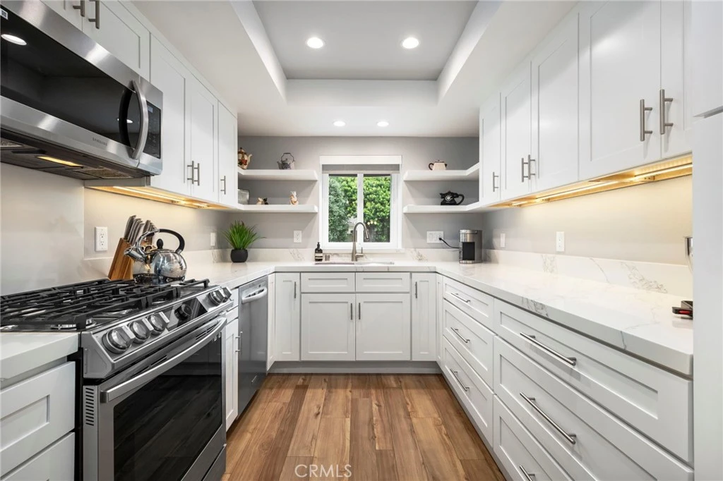 Welcome home to this fully upgraded corner unit with smart features, scenic views and exceptional privacy. Thoughtfully enhanced and meticulously maintained, this corner-unit condo in the highly desirable Rose Terrace community of Signal Hill is a rare gem. Nestled at the end of a quiet cul-de-sac --where mornings begin with birdsong-this spacious three-bedroom, two-bathroom home offers exceptional privacy, expansive living, and smart-home convenience, all wrapped in contemporary style. Larger than most area condos, the residence features a bright, open-concept floor plan with only one shared wall, ideal for those who value peace and quiet. The living and dining areas are anchored by a cozy gas fireplace and open seamlessly to a full-length balcony overlooking scenic foothills and open space. The remodeled chef’s kitchen is a showstopper with quartz countertops, sleek Shaker cabinetry, a modern appliance suite, and Alexa-enabled smart features—including the faucet, stove, washer/dryer, thermostat, and lighting. The primary suite offers a tranquil retreat with its own full-length balcony and views of the Palos Verdes Peninsula, oversized closets, and a freshly updated en-suite bathroom. The second bathroom features a luxurious jetted tub, and all three bedrooms are generously sized with extensive storage throughout; one of the secondary bedrooms provides another private balcony. As if this home were not already special enough, it has received numerous notable upgrades: all new double-pane windows, newer HVAC system and water heater, new LVP flooring throughout, updated light fixtures and fresh interior paint, in-unit laundry with smart appliances. Additional perks include two secure subterranean parking spaces and private storage cabinets. The well-managed HOA provides access to a heated pool, large spa, and has recently completed major capital improvements, including balcony repairs / replacements and a new roof—all while maintaining excellent financial health. Located near freeways, hiking trails, and beautifully manicured parks, this home delivers the perfect blend of modern comfort, gorgeous updates, and peaceful hillside living. Don’t miss your opportunity to own one of Signal Hill’s most stylish and serene homes.