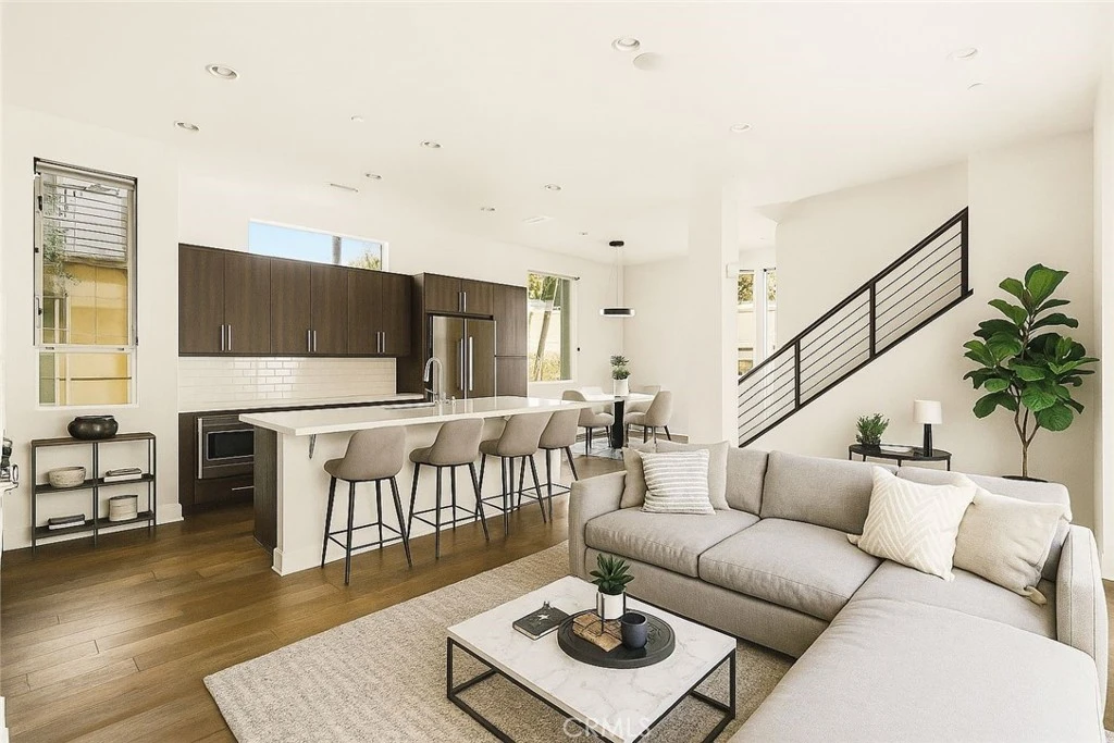 Centrally located near the heart of Los Angeles, 2201 Tom Mix Road is a striking three-level modern home offering the rare combination of privacy, style, and panoramic city views. With no shared walls, this detached residence features two bedrooms and two and a half baths, a spacious open-concept living area, and a two-car covered garage that’s fully EV-ready. The rooftop deck is a true showstopper and is complete with a fire pit and sweeping views of downtown Los Angeles, perfect for evening gatherings or quiet nights under the city lights. Inside, the home is equally impressive, with in-ceiling speakers in both the living room and primary suite, high end Bosch appliances and Bertazzoni range, smart thermostat, rich hardwood floors throughout, and brand-new carpet in the bedrooms for added comfort. Designed for modern living, every detail from the layout to the finishes reflects thoughtful craftsmanship and effortless sophistication.