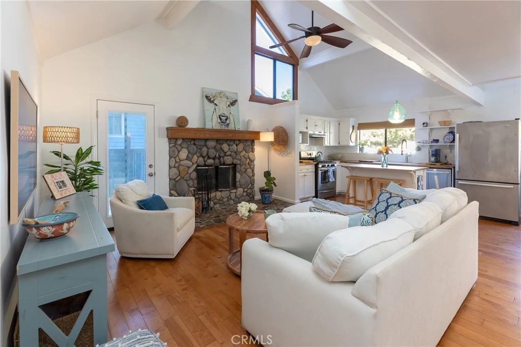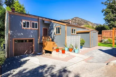 This creekside canyon charmer is a beautifully remodeled home that blends modern upgrades with cozy rustic charm. Enter from the front deck overlooking the tranquil creek and garden. The open floor plan is highlighted by an inviting living room fireplace, perfect for creating a relaxing ambiance. The luxurious remodeled bathroom features a walk-in shower, custom tile, and storage. A unique loft space offers additional space for an office, art studio, workout, or sleeping area. A fully enclosed back yard provides a quiet ambiance, and has additional storage and a wooden deck. The verdant, creekside garden includes a variety of fruit trees including a Haas Avocado. The convenience of downtown Silverado is just a short stroll away, making it easy to get the mail, grab a coffee at the Silverado Kitchen and Market, attend a lively taco Tuesday at the Cafe, or simply greet neighbors and friends. Silverado is a throwback to more gentle times, yet only minutes from all that Orange County has to offer.