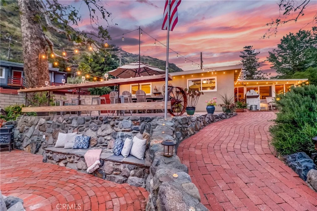 Welcome to your private canyon retreat- a breathtaking custom home set on an expansive creek-side lot in the heart of Silverado Canyon. This exceptional property offers room to roam with a two-story barn/ workshop garage, space for horses, and wide-open grounds framed by nature. Inside, the home reveals a refined open-concept layout, expertly crafted with high-end finishes and custom design elements throughout. The gourmet kitchen is a showpiece, appointed with rich granite countertops, stainless steel appliances (all included in the sale), and custom cabinetry with complementary under mount lighting- perfectly suited for both elevated everyday living and elegant entertaining. Adjacent to the kitchen, the dining area captivates with its dramatic vaulted wood ceiling and striking wood-burning stove framed in natural river rock, adding warmth and architectural charm. The living room is bathed in natural light from oversized windows that frame picturesque views of mature trees and the beautifully manicured grounds, while direct access to the backyard patio creates a seamless indoor-outdoor flow. Two secondary bedrooms overlook the lush backyard, accompanied by an upgraded full bathroom just down the hall. Then, privately tucked away on the opposite end of the home, the spacious primary suite offers a serene retreat complete with two closets, an en suite bathroom w/ laundry, and a charming bay window. Step outside into your own private sanctuary, where the tranquil sounds of the nearby creek set the tone for true canyon luxury. The expansive patio invites effortless outdoor living- perfect for al fresco dining, entertaining guests, or simply soaking in the sun. Designed for both lifestyle and functionality, the property also features a courtyard w/ hot tub, RV access, and the impressive fully drywalled two-story barn workshop, generously sized to accommodate up to five vehicles, with an electric lift providing easy access to the upper level. From the meticulously maintained residence to the expansive, versatile grounds, this exceptional estate embodies the very best of refined canyon living. Located in a vibrant neighborhood near the Cleveland National Forest, you’ll enjoy easy access to hiking and biking trails, horse facilities, local eateries, community activities and events, a nature preschool, Silverado Park + Community Center, award-winning schools, a community garden, and the Silverado Public Library. Come experience canyon living at its finest.