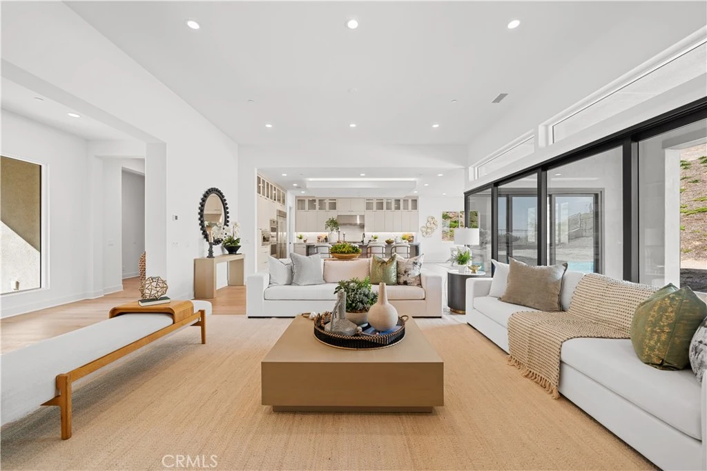 Welcome to Adler at Saddle Crest, a stunning 5-bedroom, 4.5-bathroom residence located in the exclusive, gated community of Silverado Canyon. Offering nearly half an acre of privacy, this modern home, built in 2023, spans 4,968 sqft with a versatile multi-level layout. The 4,199 sqft main level is designed for seamless living and entertaining, while a 769 sqft private suite with a separate entrance provides an ideal space for multi-generational living or a secluded retreat. The chef’s kitchen features elegant "Buff Linen" cabinetry, premium white quartzite countertops, a full-height backsplash, and a striking gray quartzite waterfall island. Equipped with top-tier Sub-Zero and Wolf appliances, it’s a culinary dream. The open-concept living areas showcase upgraded wood flooring, while cornerless stacking doors in the great room create an effortless transition to outdoor living. Additional luxury details include a dropped ceiling with uplighting and plush carpeting in the secondary bedrooms. This exceptional home combines modern design with unparalleled convenience, just minutes from the best of Orange County.