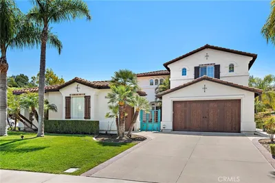An entertainer’s dream, privately tucked away in the peaceful setting of Silverado Canyon.. Located at the end of a quiet cul-de-sac in the prestigious and rarely available Santiago Canyon Estates, this stunning 4-bedroom, 3.5-bath residence offers approximately 3,350 sq ft on a nearly 16,000 sq ft private lot with no neighbors behind and sweeping Saddleback Mountain views. This hidden-gem neighborhood is known for its peaceful, serene setting while still offering convenient access to nearby amenities. Designed for effortless indoor-outdoor living, the backyard is both private and inviting with a saltwater pool and spa featuring a Baja step and waterfall, wraparound yard, personal chipping and putting green, lawn, mature landscaping with fruit trees and hydrangeas, fountains, covered patio, and gazebo with built-in BBQ — ideal for both entertaining and everyday enjoyment. A gated courtyard with fountain welcomes you into a dramatic foyer, formal living and dining rooms and scenic hillside views that create an immediate sense of warmth and elegance. The gourmet kitchen features a center island, breakfast bar, casual dining area, upgraded appliances, and walk-in pantry, opening to a comfortable family room with fireplace, surround sound, and built-in media storage — thoughtfully designed for both relaxed family living and elevated entertaining. The main-floor primary suite offers tranquil canyon views, an oversized walk-in closet, and spa-inspired bath. A separate main-level guest suite includes a Murphy bed, private courtyard and backyard access, and its own garage — ideal for guests, multigenerational living, or a private workspace. Upstairs features new flooring, a versatile loft, and two secondary bedrooms connected by a Jack & Jill bath. Complete with a fully owned solar system.