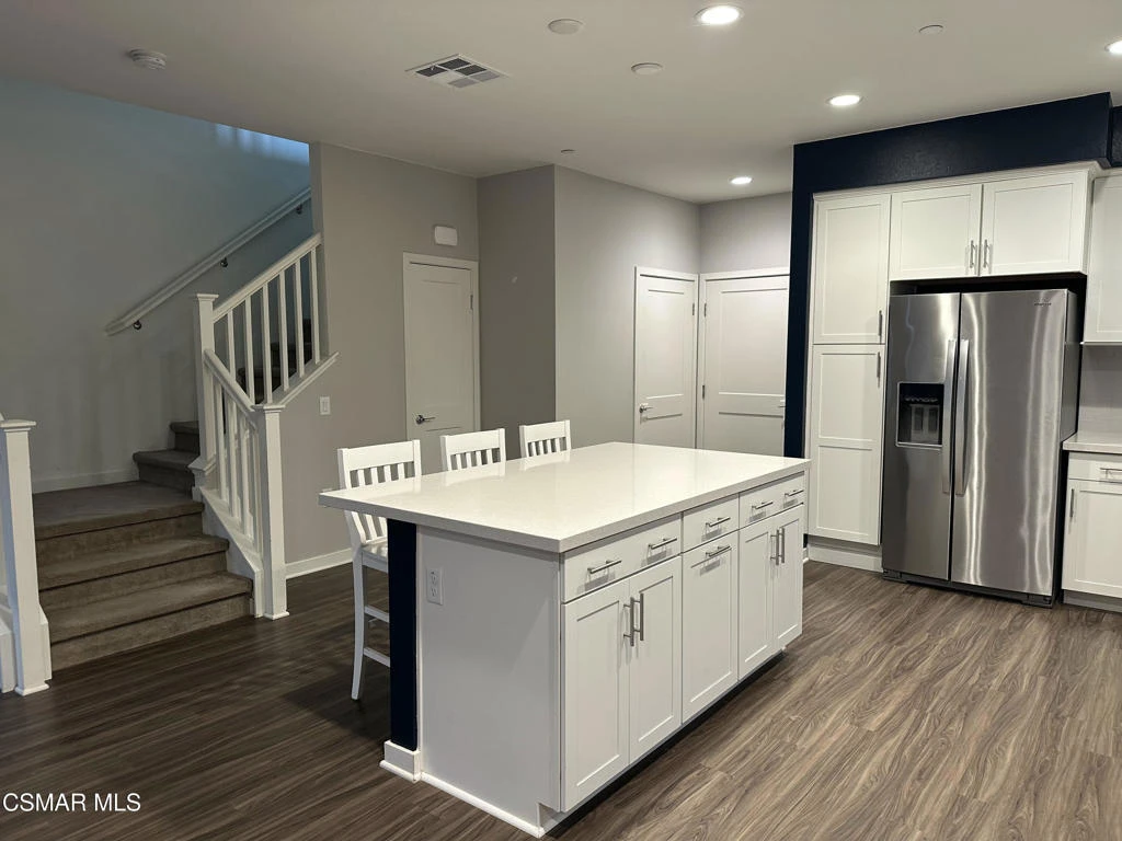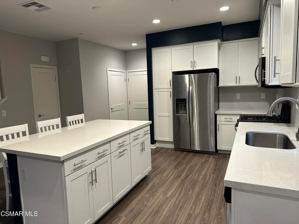 Charming and contemporary 3-bedroom (plus loft) townhome in the highly-desired Westerly neighborhood of Simi Valley! Built in 2018 and never-before rented, this CORNER unit home is flooded with natural light and has a 2-car attached, finished garage at the end of a cul-de-sac. From the wrap-around front porch, enter to an open-concept floorplan featuring soaring 9 foot ceilings, neutral paint, wood-like vinyl flooring, and updated lighting throughout. Entertain easily in the gorgeous kitchen, complete with white Shaker cabinets, quartz countertops, stainless steel appliances, and island with counter seating. A cozy family room, dining area, and powder bathroom complete the downstairs. Upstairs, the light-n-bright primary bedroom boasts a huge walk-in closet and a private bathroom with quartz counter tops, dual sinks, and oversized shower stall. Two secondary bedrooms with ceiling fans utilize a hall bathroom with dual sinks, quartz counters, and shower-over-tub. The loft serves as the perfect space for an office/den/workout space. Enjoy reduced electricity bills (due to the solar panel system) and the convenience of a tankless water heater. Westerly offers a resort-style pool, gathering spaces with BBQs, children's playground, pet park, bocce ball court, and ample guest parking. The neighborhood is uniquely located near hiking/biking trails, dining & shopping, and access to the 118 & 23 freeways. Kitchen refrigerator and washer & dryer (in upstairs laundry room) are included with lease. Don't miss this opportunity for comfortable, modern living with top-notch community amenities!