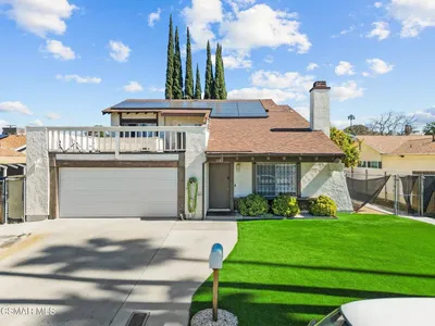 Gorgeous Large Family House with a Pool and ADU!! The Main house is a five bedroom 3 bath home with four bedrooms upstairs and one downstairs. It features an open floor plan with recently remodeled kitchen and bathrooms. It also has Central heating and air conditioning, Dual pane windows, Owned Solar power production, High wood beam ceilings, Pool, Two fireplaces, Fruit trees and two covered patios. The ADU has its own entrance and is attached to the main house but doesn't allow access. It is a Two bedroom and Two bath unit this is approximately 1000 sq. ft. . It is perfect for a rental income or keeping family close. This home is Located North of the 118 freeway close to many different shopping centers and parks.