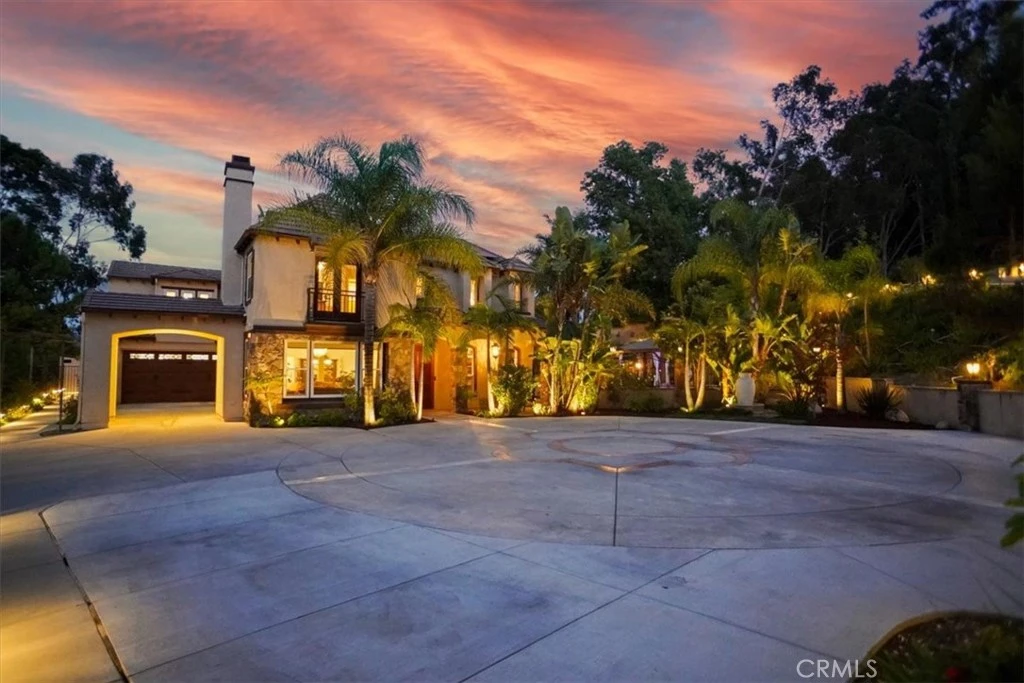 Be Prepared to Be Seduced! Welcome to your private sanctuary, a truly resort-like entertainer’s estate nestled behind secure electric gates and perched atop a long private drive. This is Southern California living at its finest, where every day feels like a vacation and serenity surrounds you. More than a home - you’re buying a lifestyle. Boasting nearly 3,800 square feet of stylishly updated living space, this spectacular residence features 4 spacious bedrooms (with potential for 6!), 4 bathrooms, and sits on an expansive half-acre+ lot that feels worlds away from the ordinary. Whether you're entertaining or simply unwinding, this home offers the perfect backdrop for any occasion. Outdoors, let yourself be swept away by the resort-inspired amenities: a sparkling pebble-finished pool and spa with Baja shelf, custom BBQ and outdoor kitchen, covered TV lounge with fireplace, multiple pergolas, view cabanas, a putting green, and lush, manicured grounds that exude tranquility and privacy. It’s a setting so serene, you’ll forget you're just minutes from the city. Inside, designer touches abound. From wood-look tile flooring and crown moldings to French doors and custom motorized window treatments, no detail has been overlooked. The heart of the home is a chef’s dream kitchen featuring Quartzite countertops, high-end stainless steel appliances, a pot filler, double pantry, and a center island with breakfast bar -perfect for gatherings and creating memories. The floorplan flows effortlessly and is bathed in natural light, with formal living and dining rooms, a family room, a library/study, and an expansive upstairs loft/media area. Retreat to your luxury primary suite with its own sitting area, view balcony, dual walk-in closets, and a spa-inspired bath with soaking tub, large walk-in shower, and dual vanities. Additional features include a 3-car garage, RV parking, a large motor court, fully owned solar panels, and dual-zone HVAC -offering both convenience and cost-saving efficiency. This is more than a home -it’s a serene escape, a statement, and a lifestyle you’ll never want to leave.