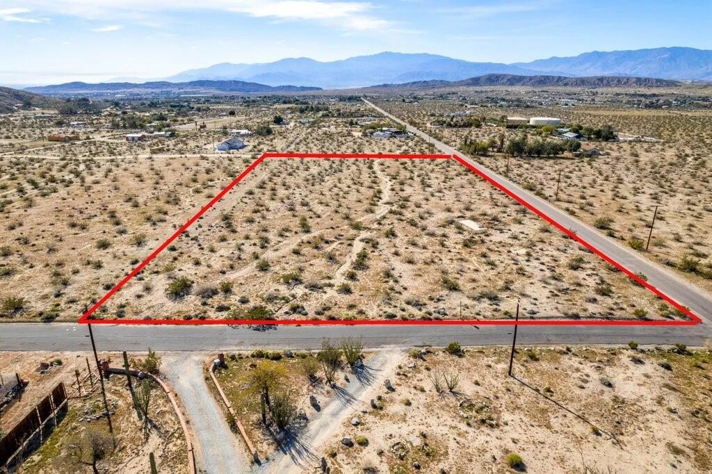 Fantastic Opportunity! Sought after location on the corner of 2 paved roads, Wide Canyon Rd and Lyons Blvd in Sky Valley, sits a 5-acre parcel with unobstructed mountain views. This rural residential area is an excellent location with water meter in place and electrical close by. A beautiful neighborhood with upscale view homes, and just perfect for a lovely ranch retreat with fruit trees, a lush garden, and much more. Enjoy the fresh air, wide open spaces, and peaceful surroundings. Sky Valley, a section of 37 square miles, is an up-and-coming area for desert living where you can relax in a country environment and create your own rustic lifestyle privacy. Aerial photo boundary lines are approximate. Buyer to verify all features of property.