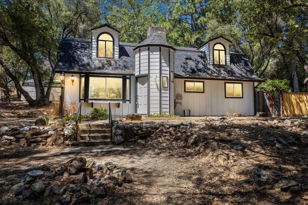 Tranquil and serene, your perfect retreat awaits. This unique property is ideal for entertaining family and friends, surrounded by picturesque scenery at every turn while still being conveniently close to amenities, schools, and recreational activities. The spacious main living area boasts a stunning corner fireplace and a wood-beamed ceiling. The recently remodeled kitchen features a gas stove, luxurious countertops, beautiful cabinetry, and ample storage for all your culinary needs, with views into the formal dining room. The large laundry room offers a big sink, tiled countertops, and plenty of storage space. Venturing upstairs, the primary bedroom is a peaceful haven with a cozy reading nook overlooking the outside yard while both bathrooms includes a walk-in tiled shower and an updated vanity and mirror. A section of the backyard leading up to the home is fenced in, while there are also multiple large storage sheds that are perfect for keeping tools, equipment, or other items. Located in the Phoenix Lake Country Club Estates - this home is truly one of a kind with its expansive lot and charming looks!