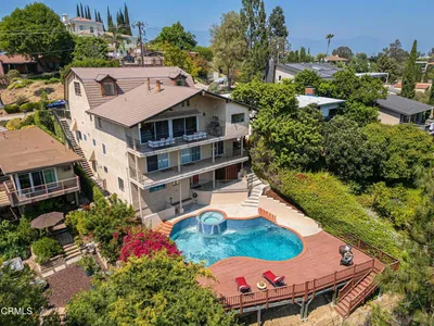 412 Oaklawn Avenue is a landmark 1905 Tudor Revival residence set on nearly one acre in South Pasadena's Oaklawn Historic District. Designed by Kavanaugh & Barnes and built by the F. O. Engstrum Company, The architecture reflects the early American Tudor Revival style, defined by steeply pitched front facing gables, ornamental half timbering, stucco and masonry cladding and distinctive brick detailing. A deep, recessed brick entry porch framed by a Tudor arch creates a dramatic sense of arrival. The home's scale and detailing reflected the aspirations of the Oaklawn tract, a master planned enclave promoted as South Pasadena's 'suburb deluxe.' Created during a period of rapid cultural and architectural growth in the area.Inside, bands of small paned nine over one wood sash windows wrap the facade, while a prominent bow window anchors the western end of the house. Original architectural details include hardwood floors, finely crafted millwork, built in cabinetry, leaded glass accents and generously scaled public rooms that reflect the home's early Old English design. The grounds include a historic carriage house beside the pool, updated with a kitchen and bath, as well as a separate studio with a fireplace opening to the outdoor dining terrace. These auxiliary structures preserve the property's estate like character while offering flexible living and guest accommodations. The home has been carefully stewarded through seismic retrofitting, sensitive remodeling, and restoration, maintaining its architectural integrity throughout.A contributing property within the National Register-listed Oaklawn District, 412 Oaklawn stands as a rare and remarkably intact example of early Tudor Revival architecture, combining historic pedigree, expansive grounds, and enduring presence in one of South Pasadena's most sought after neighborhoods.