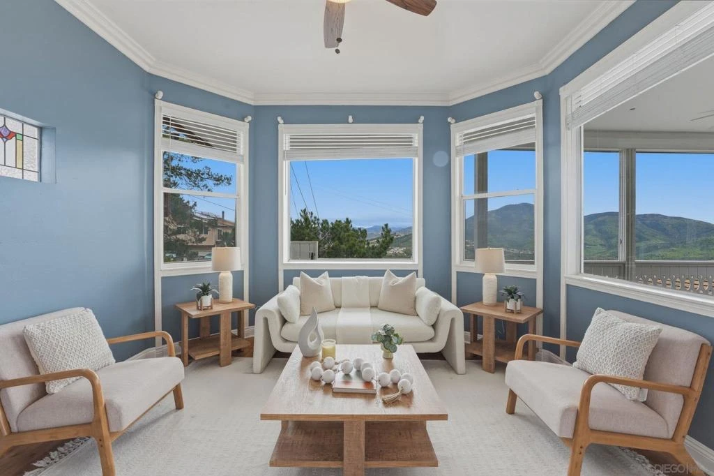 Perched atop Dictionary Hill, this one-of-a-kind Victorian estate offers timeless elegance & breathtaking forever views of the lake, mountains & city lights. With 3 BRs + loft & 4.5 BAs, this custom home blends classic charm with modern comfort. Enter from the inviting front deck into a light-filled living & dining room featuring oversized view windows that capture stunning panoramas The grand chef’s kitchen is designed for both entertaining & everyday living, featuring abundant counter space, an expansive island with cooktop & a generous walk-in pantry. The downstairs BR includes a private full BA & backyard access ideal for guests or multi-gen living. Luxurious master retreat offers a romantic dual-sided fireplace shared with the spa-inspired bath, complete with a large soaking tub & private access to the view deck overlooking the lake. The 3rd BR enjoys its own ensuite bath & direct access to the deck & charming turret. A spacious loft provides the ideal setting for a home office, art studio, or library. Oversized 3-car garage (possible 4-car tandem) includes a full BA, shower & workshop great ADU potential. The grounds are equally enchanting. The backyard is designed for memorable gatherings with a tranquil koi pond, patio space, & spectacular sunset views. In front, terraced block walls showcase an array of fruit trees, adding both beauty and bounty to the property. Conveniently located with easy freeway access & just minutes from shopping & scenic hiking trails, a truly rare opportunity to own a landmark home with views that will captivate you forever.