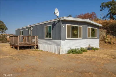 Experience the perfect harmony of modern comfort and serene mountain living at this beautifully updated 2-bedroom, 2-bathroom retreat situated on rolling, lush 4.6+- acres of land. Located at a desirable elevation where you can enjoy refreshingly cooler summer nights and just enough of a light winter snow, this home has been meticulously reimagined for both style and efficiency. The exterior is built for peace of mind with a newer metal roof, durable aluminum siding, metal skirting, and dual-pane windows that keep the interior cozy year-round. Step inside to find a light-filled floor plan boasting a chef-inspired kitchen with upgraded cabinetry, tile countertops, and quality flooring that flows seamlessly into the dining area. Both bathrooms have been thoughtfully renovated with custom finishes, complemented by upgraded doors and contemporary laminate flooring throughout the main living space & bedrooms. Beyond the home, this virtual compound is fully fenced with a secure double-gated entry and features a private walking trail that winds through a picturesque landscape of mature oaks, native manzanita, and pine trees. The property offers incredible utility with a good well, a finished storage building equipped with power for your workshop or hobbies, and an easy-to-maintain granite lined driveway leading to expansive level areas perfect for parking or future projects. Whether you are relaxing on the covered front porch or taking in stunning sunsets from the rear covered deck, this turnkey nature lovers retreat offers a rare combination of refined interior style and rugged natural beauty. This home is believed to be on a permanent foundation system with a recorded 433A, offering excellent potential for FHA, VA, or conventional financing. Bath counter may differ from tax records, Buyer to verify. Storage Containers are excluded from the sale.