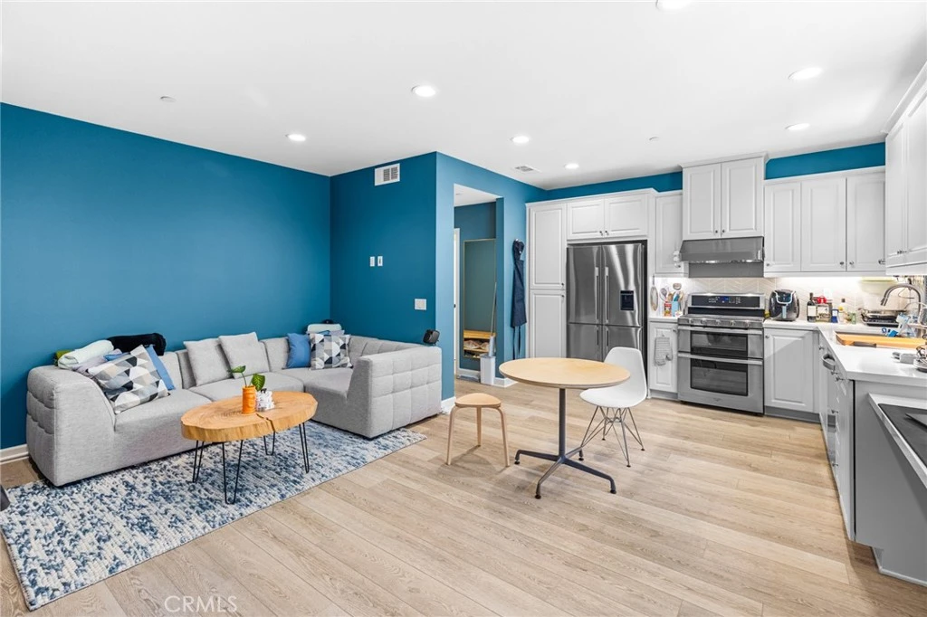 Welcome to Lantana @ Beach! This newer, large 2 bedroom, 2.5 bath, 2 story townhome has modern features you will fall in love with. Open floor plan with accent walls, high ceilings with recessed lighting and large windows for natural light. The designer kitchen opens to the living room and features quartz counter tops and modern white cabinetry. Two spacious bedrooms both with walking closets, upstairs laundry room. You will also find luxury vinyl plank flooring downstairs and luxury carpet upstairs, Lutron dimmer switches, central air, and more. The home is equipped with energy efficient features such as a solar system, tankless water heater, and tinted dual pane windows to name a few. There is an enclosed patio perfect for a weekend BBQ, and an attached two car garage with plenty of storage. Enjoy the pool and lounging on the spacious deck. Connect with your neighbors at outdoor social spaces and the play area. Or stroll to Rodeo 39, the retail hub next door with hip eateries, shops, fitness, and public art. This home is close to everything you love about Orange County. Quick access to the 22, 405, & 5 freeways. Next door to Garden Grove and Huntington Beach, and less than 30 minutes to Irvine. Low HOA fees and No Mello Roos. You will enjoy living at Lantana!