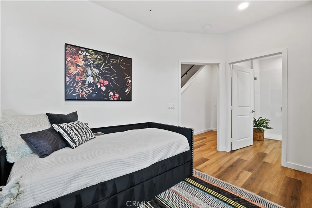 FINAL PHASE NOW SELLING! New construction townhome in a GATED community by Bonanni Development in Stanton. This is an end location Plan 3 townhome with 3 bedrooms and 3.5 bathrooms, with one bedroom and full bathroom on the FIRST level. Plus a two car, side by side garage. Everyone loves the great room design with a large island, plenty of cabinets and a wonderful private deck. Come be at home in your new, beautiful kitchen with quartz countertops and stainless steel appliances. This home will be complete in spring and is priced to sell! Built with state-of-the-art technology, high speed wiring throughout, plus new appliances, cabinets and flooring. This gated community will have three unique parks for homeowners to enjoy. SOLAR PANELS INCLUDED in price. Located close to Rodeo39 and the 22 Freeway off Beach Blvd pictures are of model home