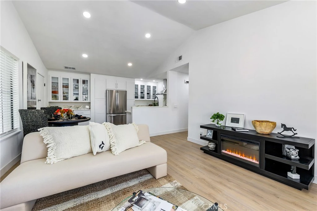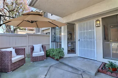Gorgeous 2 bedroom home with vaulted ceilings. This home features a new custom kitchen with Built-in China cabinet beveled glass and two built-in pantries with custom marble counters. New Stainless Steel LG appliance's included in sale. Gas range, refrigerator and dishwasher. Beautiful Custom Marble counters and cabinets in bath & main suite. All new plumbing fixtures. Large deep custom tub with rain shower. Lighted mirrors with WIFI. Mirror wardrobe, large walk-in closet with built-ins. Washer/Dryer included in sale. Recessed lighting in all rooms with dimers. Waterproof laminate flooring. This pristine condo offers privacy, convenience, and true turnkey living. Completely remodeled throughout, New outside decking just completed. Central heating & air-conditioning. New thermostat. Freshly painted with all new door hardware. This is a true modern upgraded home to enjoy and entertain your guests. A safe and Guard gated community. Freestanding Electric Fire Place included. Within 1 minute walking distance of the pool & jacuzzi. Knott's berry Farm, and several entertainment and restaurant's facilities close by. Easy and close commute to 405/22 freeways, many restaurants & entertainment close by. Close to the pool and other amenities. One covered assigned parking space with plenty of guest parking spaces. This home is Pride of Ownership.
