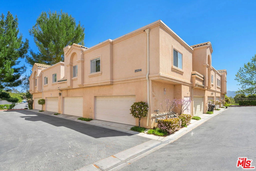 Welcome to this bright and beautifully maintained, move-in ready home offering comfort and style! This light-filled corner townhome boasts 2 spacious bedrooms and 2 full bathrooms and features an updated kitchen with sleek stainless steel appliances, a gas range, and plenty of cabinet space. Relax in the light drenched open-concept living area with a cozy fireplace, or step out onto your private balcony to take in the fresh air. Other highlights include a stunning picture window, vaulted ceilings, freshly steamed carpets, full-size washer & dryer, an oversized two-car garage with ample storage and a large kitchen peninsula with a breakfast bar. The primary suite offers a large built out walk-in closet and en-suite bath, providing a serene retreat. Located in the highly sought-after Stevenson Ranch community, you'll enjoy resort-style amenities including a sparkling pool, spa, playground, picnic areas, and lush walking paths surrounded by greenery and mature trees. This quiet, safe neighborhood offers the perfect blend of tranquility and convenience. Don't miss your chance to own this airy and spacious home in one of the most desirable areas!
