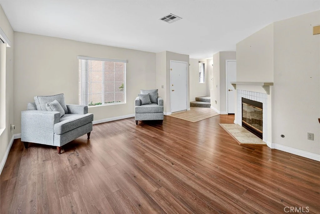 Darling townhome in Stevenson Ranch. 2 Bedrooms upstairs, each with their own bathroom. Fresh interior paint just finished 12/8/25. New carpet installed in both bedrooms, 12/10/25. Downstairs features a fireplace, good sized kitchen, powder room, and beautiful laminate flooring. Step outside through the slider to a lovely patio where you can enjoy the outdoors. Good location across from guest parking. Side by side 2 car garage. Washer/Dryer and refrigerator are included. HOA amenities include pool/spa, and park areas.