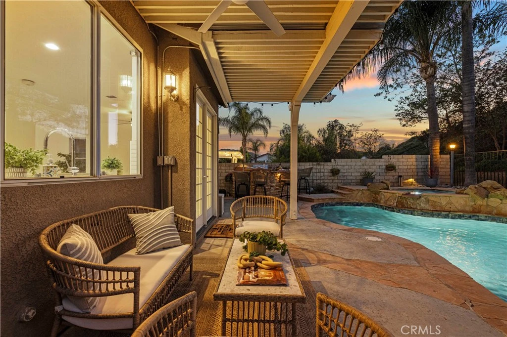 Refined Modern Luxury in Stevenson Ranch – Fully Remodeled Pool Home with Designer Finishes! Experience elevated living in this stunning Stevenson Ranch pool home, privately nestled at the end of a quiet cul-de-sac with no rear neighbors and only one neighbor to the side. Recently reimagined with over $125,000 in high-end upgrades, this 3-bedroom, 2.5-bathroom residence blends timeless elegance with sleek modern style in one of Santa Clarita’s most coveted neighborhoods. Step inside to a bright and sophisticated interior featuring designer 36"x36" high-end porcelain tile flooring—a luxurious and durable surface that defines the main level. The gourmet kitchen is a showpiece, boasting Calacatta-inspired durable porcelain slab countertops, subway tile backsplash, and premium fixtures and lighting sourced from Ferguson Bath, Kitchen & Lighting Gallery. An oversized architectural porcelain trough sink adds a dramatic designer touch, while updated cabinetry and finishes complete the look. All three bathrooms have been completely remodeled with exquisite attention to detail, including modern light fixtures, premium tile work, and high-end hardware. The spa-inspired primary bath features a luxurious porcelain-tiled walk-in shower, a freestanding soaking tub, and contemporary finishes that rival any five-star resort. Upstairs, the former loft has been transformed into a custom walk-in closet—a versatile space that could easily serve as a fourth bedroom, home office, or nursery. The staircase and second level are finished with luxury, scratch-resistant, waterproof wood-look flooring that offers both beauty and durability. Additional features include plantation shutters, a whisper-quiet whole house fan, upgraded recessed lighting, and a hard-wired security camera system offering peace of mind. Step outside into your private entertainer’s backyard—featuring a sparkling pool and spa with cascading waterfalls, a built-in BBQ with refrigerator and beer tap, and ample patio space for gatherings or quiet relaxation. Enjoy the unbeatable location just minutes from Starbucks, Wood Ranch BBQ, Spumoni Italian, Urbane Café, Chili’s, LA Fitness, and more—plus award-winning Stevenson Ranch schools, Richard Rioux Park, and quick access to the 5 Freeway. All this with low HOA fees and exceptional value as the lowest-priced pool home in Stevenson Ranch—this is modern California living at its finest.