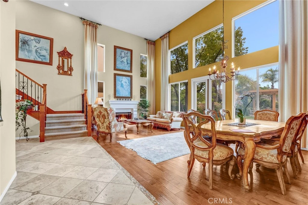 Once a model, now a supermodel! Luxury living is elevated in this stunning 5-bed, 4-bath home that creates the palate of a life well lived. Carefully curated for those who crave the perfect blend of function and opulence, every inch of this residence is designed to impress. Step inside through a custom leaded glass double front doors and be greeted by a wall of windows allowing a stunning view of the entertainers backyard and mountains beyond. The open-concept layout of the formal living room /dining room are ready to host gatherings for the upcoming holiday celebrations or everyday dinners. Adorned with solid hardwood flooring, travertine tiles, custom wrought iron and wood banisters, dramatic fireplace and recessed lightning are just some of the gorgeous upgrades. Show off your wine collection in the large built in wine closet that sits right inside the foyer. A stunning solid paneled wood office or downstairs bedroom offers elegance and practically. A 3/4 bath is conveniently located next to the office perfect for short term guests or the in-laws. The designer kitchen features a dramatic island/breakfast bar with a huge stainless steel sink, wood paneled built-in refrigerator, granite counters and solid wood cabinets. Settle in to watch your favorite shows in the casual family room complete with built in shelving, a cozy fireplace that also opens up to the kitchen and eating area. The upstairs offers more built-ins in the loft, like custom bookshelves and an oversized desk as well as a cute built-in bench great for curling up with your favorite book. The primary suite has high ceilings and a spacious balcony where you can take in mountain views or the stars at nighttime. The primary bath offers ample space with a large step in closet, soaking tub, dual vanities and a walk in shower. Also upstairs is an en suite guest bedroom, the other sizable guest bedrooms and full bath. If you like to frolic outside, this backyard is ready to host the best pool parties or intimate get togethers. A sparkling heated salt water pool & spa, flat grassy yard and covered gazebo offers so many ways to enjoy this amazing space. Mature landscaping, 3 car garage and a quiet cul de sac complete this home that isn’t just beautiful—it’s built to impress.