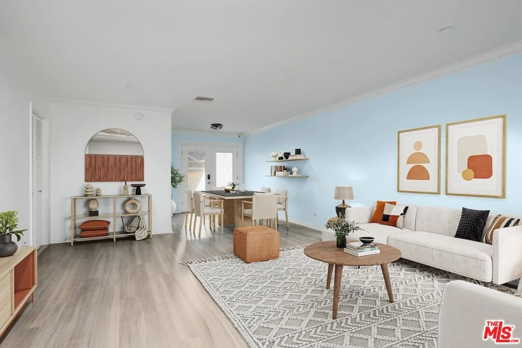 Wonderful townhouse in the desirable Studio City Villas. This lovely home features two generously sized bedrooms and a full bath upstairs, as well as a laundry closet with washer and dryer included. The main level boasts a spacious living room and dining area. The upgraded kitchen includes new quartz countertops, all major appliances (refrigerator, oven, stovetop, and microwave), a reverse osmosis water filter system, and a new, premium three-level dishwasher. Off the entryway you will find a powder room with custom tilework and a large retro-style porcelain sink. Throughout the home you will enjoy new luxury vinyl plank flooring. At the rear of the home, French doors open to a patio with a retractable awning. Sellers are including their stainless steel barbecue grill, which is connected to an outdoor gas line, eliminating the need to purchase and refill propane tanks. The unit's dedicated parking space and storage cabinets are in the carport directly behind the patio's back gate. Upstairs and down you will find plenty of closet space. The dual pane windows have custom fitted blinds. The complex amenities include a large, heated swimming pool, relaxing spa, and over a dozen guest parking spaces. HOA monthly dues cover water, trash/sewer, building insurance, earthquake insurance, pool/spa, grounds and common area maintenance. Conveniently located near local favorites such as Aroma Cafe, The Front Yard, Tujunga Village, and the scenic Woodbridge Park. Plus, you're perfectly positioned for easy access to Hollywood-Burbank Airport and Universal Studios. The current owners have loved calling Studio City Villas home but have had to relocate for work, so here is YOUR opportunity to fall in love with Studio City Living.