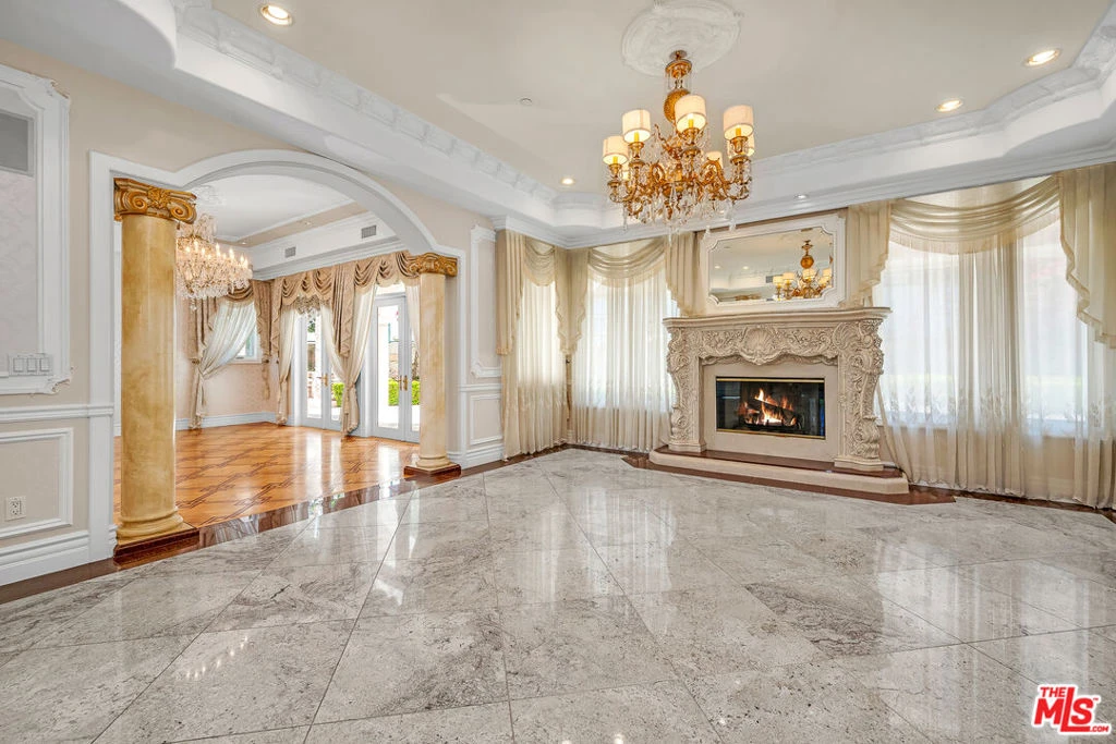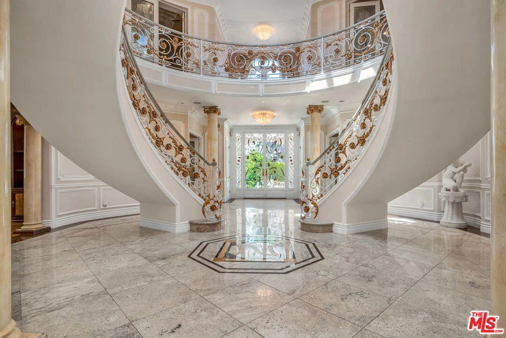 Gated European Elegance with Breathtaking Canyon Views. Perched on a private 2.5-acre estate, this gated European-inspired residence offers unparalleled luxury and privacy, complete with sweeping canyon vistas and museum-quality finishes throughout. Custom wrought-iron doors open to a dramatic entryway featuring a grand double marble staircase that sets the tone for the elegance within. This expansive estate features all the refined spaces expected of a premier property: a Formal Dining Room, stately Library, elegant Living Room, Chef's Kitchen, Games Room, Home Theatre, and Wine Cellar. A separate Guesthouse provides additional comfort with two bedrooms ideal for hosting extended family or guests in style. Car enthusiasts will appreciate the three-car garage and generous driveway with ample room for additional vehicles. Outdoor living is equally impressive with a spectacular Infinity Pool, private Tennis Court, Sauna, and a fully equipped Outdoor Kitchen and Pool House perfect for entertaining on warm summer evenings. This is more than a home, it's a lifestyle of luxury, privacy, and timeless sophistication.