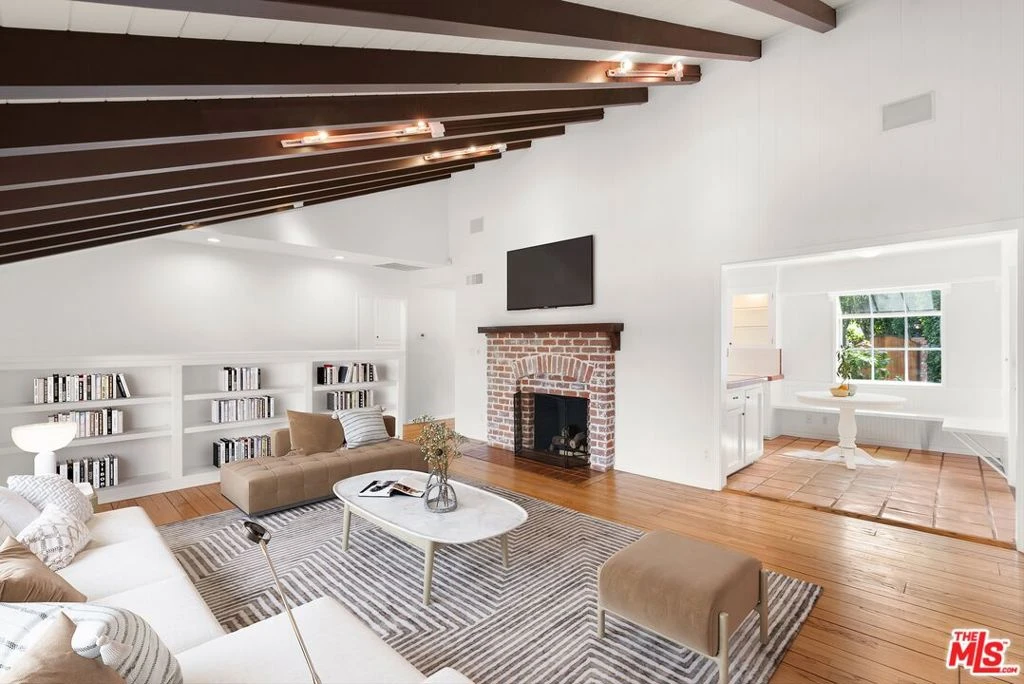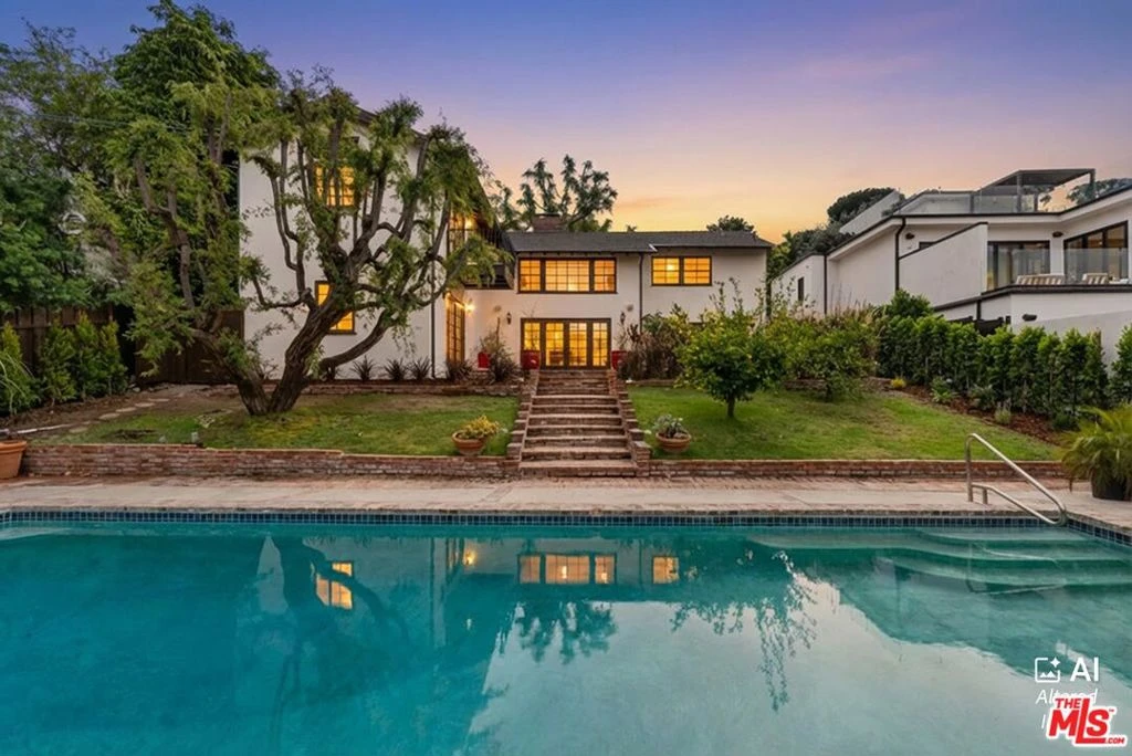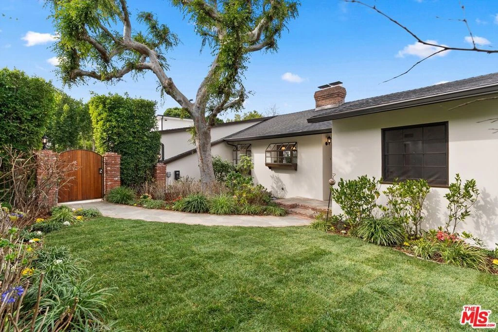 This rare offering combines Old World charm with California indoor-outdoor living in a premier location. This enchanting 5-bedroom, 4-bathroom retreat is nestled in one of the area's most sought-after neighborhoods, within proximity to the prestigious Harvard-Westlake School. Behind a brick-pillared entrance and flagstone driveway, this home masterfully blends timeless architectural charm with thoughtful updates throughout, including state-of-the-art Schlage smart locks with keyless entry. Major access points feature locks that can store up to 100 user codes and are conveniently managed via a smartphone app for ultimate security and convenience. The home's curb appeal is undeniable, with meticulous landscaping framed by mature trees and pristine hedgerows ensuring complete privacy. The expansive backyard is an entertainer's paradise, featuring a custom-sized sparkling heated pool surrounded by brick detailing, terraced lawns with brick-accented steps, and multiple patio areas perfect for al fresco dining. A charming fountain adds a tranquil ambiance to the outdoor living spaces, while built-in speakers create the perfect atmosphere for outdoor entertaining. The heart of the home is the inviting kitchen, showcasing authentic terracotta tile flooring, pristine white cabinetry, and distinctive red tile countertops. A striking custom copper range hood serves as the culinary centerpiece, while a cozy breakfast nook with built-in banquette seating and abundant windows creates the perfect spot for casual meals overlooking the gardens. Built-in speakers provide ambient sound for cooking and entertaining. Hardwood floors flow throughout, complemented by dramatic exposed beam ceilings that add architectural character and visual height. The formal dining room provides an elegant space for creating memorable gatherings. The living room features vaulted beamed ceilings, hardwood floors, and walls of windows that look out into the lush backyard and a custom oversized heated pool. A beautiful brick fireplace anchors the room, complemented by built-in shelving that adds charm. Built-in speakers complete the sophisticated entertaining space. The primary suite is a sanctuary, featuring a brick fireplace, exposed beam ceiling, private balcony access, and hardwood floors. The spa-like en-suite bathroom is generously proportioned, featuring a jetted soaking tub, an oversized glass-enclosed shower, dual vanities, and elegant tile work throughout. Additional bedrooms offer comfortable accommodations with hardwood floors and ample natural light. The smaller downstairs bedroom features custom-built-in drawers and shelves in the closet, making it ideal for a bedroom or a functional home office. Well-appointed bathrooms serve the home with style and convenience throughout. A two-car garage with built-in shelving provides ample storage, along with a convenient laundry room. Located in a highly walkable neighborhood, residents enjoy easy access to local coffee shops, restaurants, grocery stores, banks, and other everyday conveniences. The proximity to Harvard-Westlake School makes this an exceptional opportunity for families seeking access to one of the area's most prestigious educational institutions. A truly exceptional property that must be seen to be fully appreciated! Virtual staging was used.
