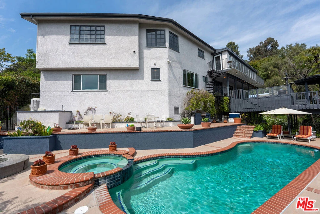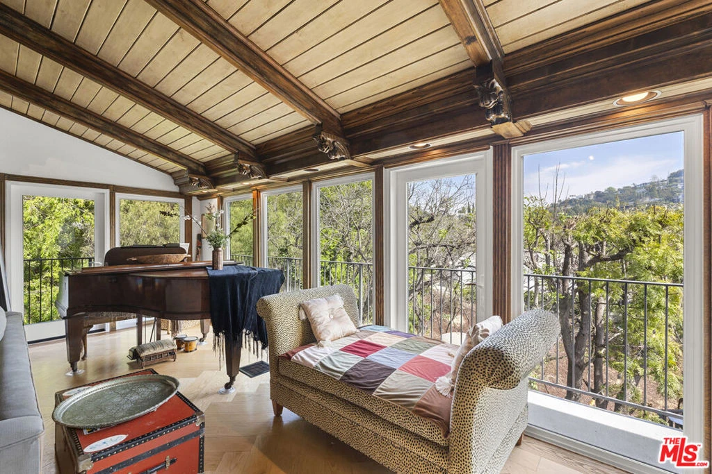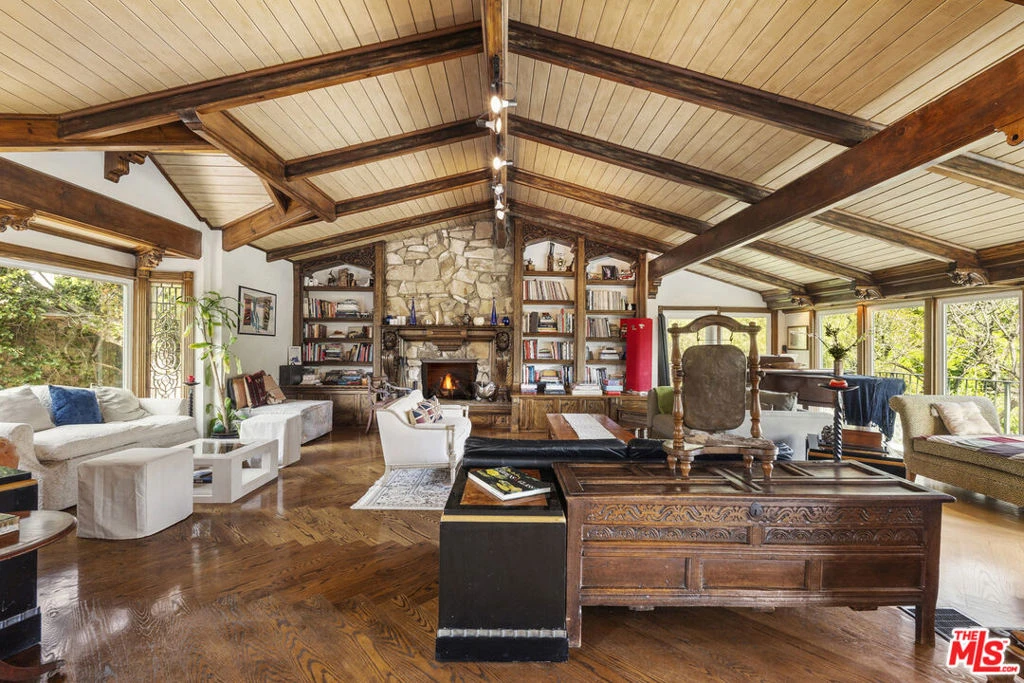 South of Ventura Blvd, nestled in the coveted Berry Hilltop Community of the Studio City hills, you will find 3537 Berry Drive, a fully furnished 4 bed, 4 bath character home with canyon views from every room that is equally suited for entertaining as it is for relaxation and creativity. Upon entering the recently refreshed home, you are immediately greeted by the living/dining area's vaulted ceiling, exposed beams and wall of new windows overlooking the sun-drenched backyard and lush hillside beyond. The large great room features a hand-carved fireplace, antique grand piano, multiple seating areas and a pool/snooker table that doubles as a dining table fit for 14. Past a hallway full bathroom is the wood-paneled media room with English pub doors, built-in bar, and 84" screen with a new 4k HD projector and surround sound. The bright, eat-in kitchen completes the first floor and comes fully stocked with dinnerware, pots/pans, etc. Down the impressive staircase are three bedrooms and two full bathrooms as well as the primary suite featuring a fireplace, walk-in closet, and separate vanity area, all with access to the outside. The south facing backyard has a large multi-level deck with a breezy gazebo, fire pit, and outdoor gym, all overlooking the totally private heated swimming pool, spa and built-in BBQ. When not enjoying all that the home has to offer, you'll have easy access to the work, dining and shopping options in the valley and just through Laurel Canyon to West Hollywood and beyond, while elementary aged kids can potentially attend nearby Carpenter Community Charter School. Just bring your bags and enjoy that Hollywood Hills lifestyle.