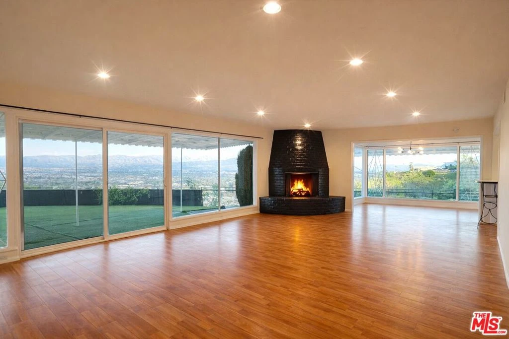 Hidden behind gates on a scenic Studio City hillside, this striking residence offers three bedrooms, three bathrooms, and sweeping panoramic city-to-mountain views. Expansive windows and glass doors flood the home with natural light, creating a seamless indoor-outdoor flow ideal for both entertaining and quiet evenings in. The full kitchen opens to generous living areas anchored by a statement fireplace, adding warmth and architectural character. A covered garage, additional parking, and a gated driveway provide rare convenience and privacy. Set above it all, this home delivers a refined retreat with commanding views and undeniable presence.