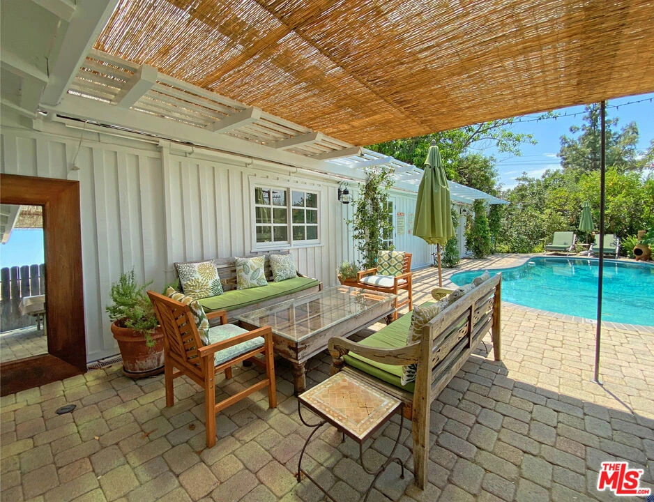 This property ticks all the boxes! Absolutely fabulous 3 bedroom ranch-style home in the Hollywood Hills with private gated grounds, complete with intercom and security cameras. The house is filled with natural light with stunning views over the valley from the deck. Entering the house one is greeted to an open plan living room, kitchen and dining area. The high vaulted ceiling, light hardwood floors and fireplace gives the home a farmhouse feel that is warm and inviting, perfect for entertaining. The fully equipped chefs kitchen with a center island and bar stools is great for friends and family to gather around while cooking! French doors off the living room lead out to the completely private swimming pool and outside dining area. The gardens are beautifully landscaped, featuring palms, lemon trees, olive trees, and lavender. A wooden dining table (seats 12), and gas BBQ along with a shaded sitting area, umbrellas and lounge chairs, create a zen-like oasis for easy entertaining and relaxing. The tranquil primary bedroom features a king size bed and en-suite bathroom with a walk in shower and bath. The other two double bedrooms share a Jack and Jill bathroom, complete with bath and shower. All bedrooms have flat screen HDTV's with Cable network and Wifi throughout the home. There is an additional powder room adjacent to the living room. The home is centrally located, walking distance to the coveted Blue Ribbon Carpenter Avenue Elementary School, and an abundance of Ventura Boulevard shops and lively restaurants. The garage is available for one car, additional parking on street. Available August 1st 2024