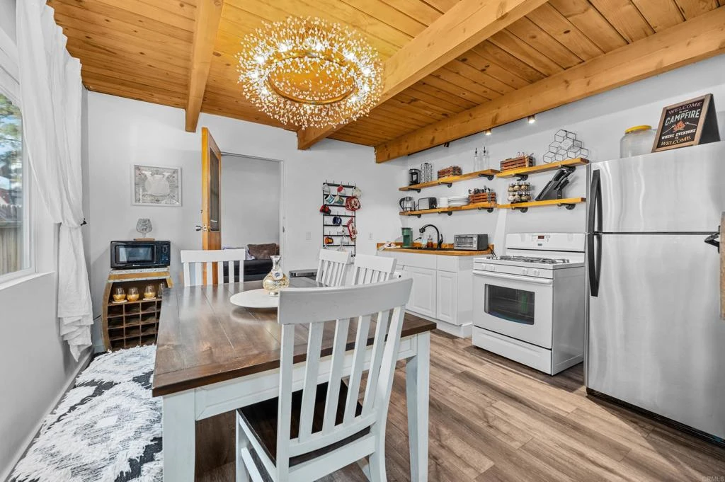 This beautiful three-bedroom, two-bathroom cabin home has been completely remodeled from top to bottom, featuring new flooring, bathrooms, paint, light fixtures, front decks, railings, exterior paint with new fascia boards and dual-pane windows, as well as new front and back doors. Sold fully furnished (negotiable), it offers proximity to Big Bear Ski Resorts and the downtown village. Currently serving as both a second home and an Airbnb, its location near Sugarloaf community amenities, parks, fire department, and schools provides both mountain serenity and convenience.
