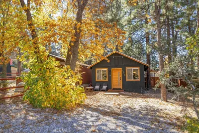Absolutely charming and beautifully remodeled, this light-filled mountain cabin is truly a delight. Fresh, bright, and impeccably clean, it's fully updated, tastefully furnished, and completely turn-key. Step into the welcoming living room featuring a cozy fireplace and an airy open-concept layout. The updated kitchen offers stylish countertops, attractive cabinetry, stackable laundry hookups, and stainless-steel appliances. A versatile bonus room off the living area provides endless options--use it as an extra sleeping space, family room, game room, office, or dining room. Title shows two bedrooms, but it is used as a single. The bathroom has been thoughtfully remodeled, and upstairs you'll find the spacious A-frame-style bedroom that feels like a peaceful retreat. Outside, the property shines with tall pines, generous outdoor space, a firepit seating area, spa, storage shed, and plenty of room for vehicles and toys. The National Forest is just up the street with beautiful hiking trails waiting to explore. Conveniently located near Kallan's Bar & Grill, Easy's General Store, Sugarloaf Park, and just minutes from the lake and ski slopes. A true Big Bear gem--sweet, serene, and ready to enjoy. Come experience mountain living at its best!