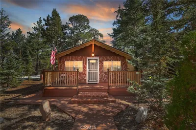 Welcome to 627 Sunset Ln — A True Mountain Retreat with the ULTIMATE Garage! Tucked away in the peaceful Sugarloaf community, this charming cabin blends cozy mountain character with practical upgrades and plenty of space for every hobby. The star of the show is the expansive oversized garage, complete with a full workshop area and an upstairs loft/game room/man cave—the perfect getaway spot for relaxing or entertaining after a day on the slopes. Step inside the inviting family room featuring vaulted ceilings with exposed beams and a classic brick fireplace, setting the tone for those crisp mountain evenings. The kitchen boasts real wood cabinetry, tile countertops, and warm rustic finishes that complement the cabin’s character. With two bedrooms upstairs and one conveniently located downstairs, there’s room for family and guests alike. The primary suite is truly a retreat, offering a private sitting area or TV room with its own fireplace, ideal for cozy nights in. A mudroom connects the home to the garage, providing the perfect transition space for snowy days or mountain adventures. Outside, a large backyard deck is ready for BBQs, gatherings, or peaceful mornings surrounded by tall pines. Located just minutes from Big Bear Lake, Bear Mountain Resort, and local hiking trails, this cabin offers both tranquility and convenience—whether you're seeking a full-time home, weekend getaway, or investment property.