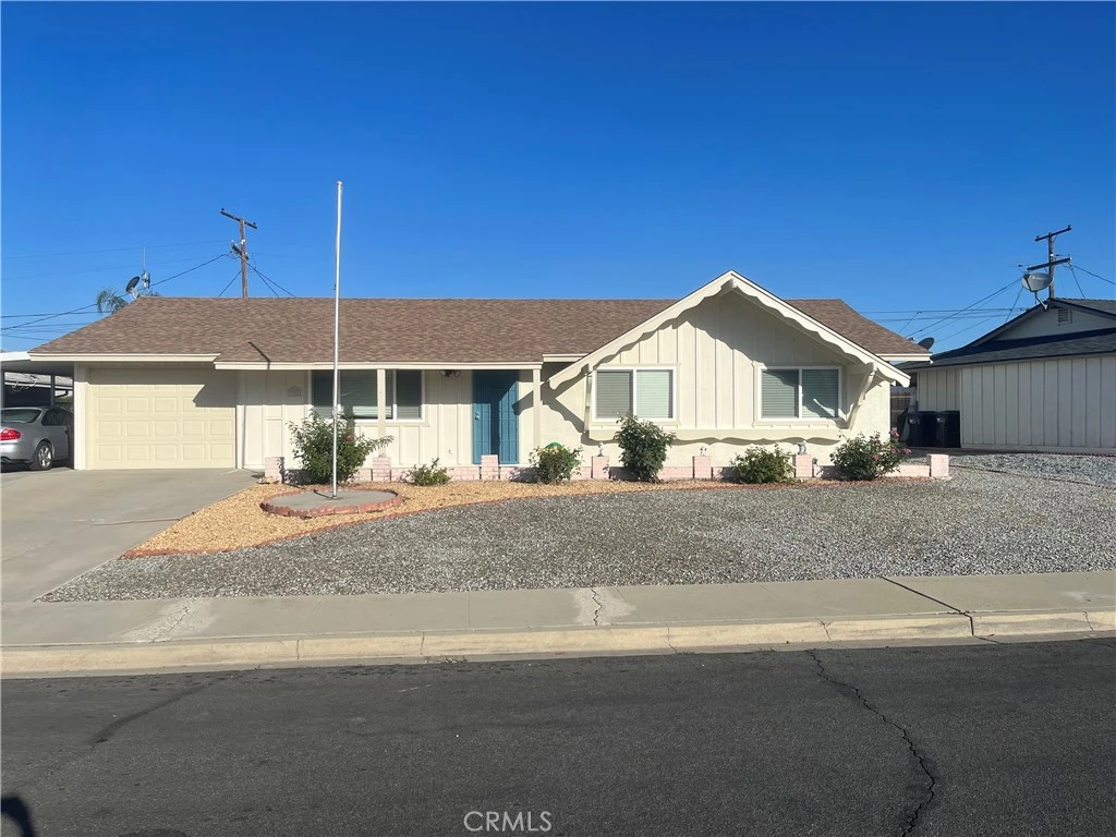 This house is located in a 55+ community. There are 3 bedrooms and 2 bathrooms. Hall bathroom has large step in tub. It is an open floor plan with living and dining open to the kitchen. Also open to the large family room. The kitchen has beautiful white cabinets, granite counter tops and new dishwasher and stove. All new beautiful floors throughout. Large laundry room and two indoor storage rooms. Interior/Exterior has just been freshly painted. Easy care yards with fruit trees and block wall. High efficiency Air conditioning and heating. New metal roof for the back of the house.