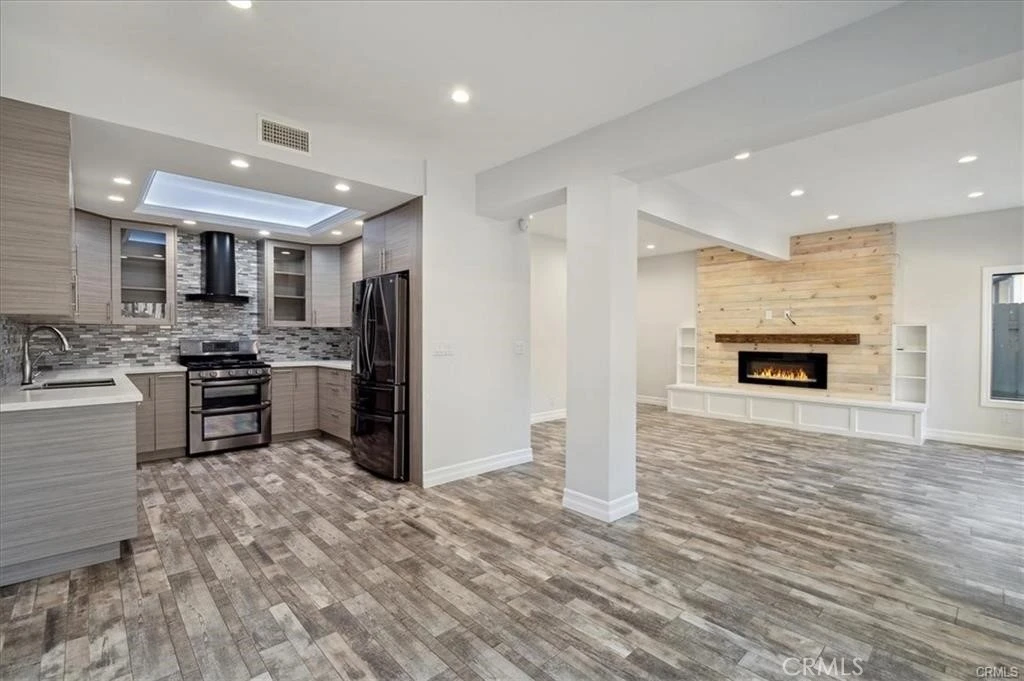 Welcome to the sought-after Sunkist Villas, an extraordinary place to call home. This beautifully remodeled townhouse features 3 bedrooms and 2.5 bathrooms, offering 1,486 sq ft of comfortable living space. Nestled in the desirable Shadow Hills/Sun Valley neighborhood and surrounded by mature trees, this stunning corner unit is situated on a peaceful cul-de-sac. The attached 2-car garage provides ample storage, while the private yard offers a sense of serenity. Inside, beautiful flooring extends throughout the entire home, complementing the light-filled living room with its elegant fireplace and adjacent dining area. The home offers a spacious open-concept layout that blends the kitchen, dining, and living areas beautifully. The kitchen is equipped with modern cabinetry, quartz countertops, a tile backsplash, and stainless steel appliances. Recessed lighting is installed throughout the home, creating a bright and contemporary atmosphere. The inviting living area features a modern fireplace with a wood accent wall and built-in shelving, perfect for relaxing or entertaining. A sliding glass door opens to a spacious patio, ideal for gatherings with family and friends. Each bathroom has been thoughtfully updated, reflecting both style and comfort. The main level includes a convenient powder room, while upstairs you’ll find a hallway bathroom, laundry room, and all three bedrooms with high ceilings. The primary suite offers a generous layout with a large closet, private en suite bathroom, and a balcony that faces open space and trees, creating a peaceful setting with a natural feel. This home also includes an EV charger in the garage, a security camera system, and newer heating, air conditioning, and water heater for added comfort and efficiency. The HOA offers access to a community pool and spa, providing a touch of relaxation and leisure. Ideally located near Burbank, Glendale, downtown Los Angeles, freeways, hiking trails, schools, and shopping. Experience comfort, style, and convenience in this charming Sun Valley home, a true gem and a wonderful place to call home.