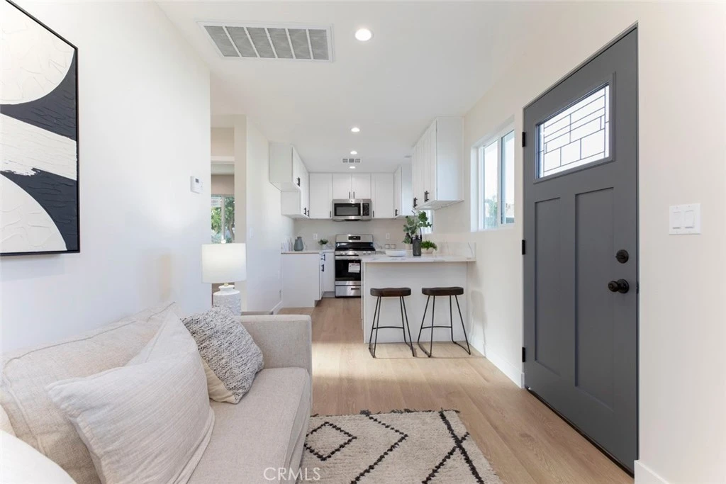 Be the first to enjoy this beautifully designed 2-bed, 1-bath home, boasting 650 sqft of brand-new construction and modern elegance. The open layout offers a bright and welcoming atmosphere with high-end finishes and thoughtfully selected materials throughout. The kitchen features brand-new appliances, sleek cabinetry, and a breakfast bar for casual dining. The bedrooms are cozy yet spacious, and the bathroom is adorned with chic fixtures and a luxurious feel. With solar panels and almost no electrical bill!! This gated home offers street parking, washer and dryer hookups, and a good-sized backyard, perfect for outdoor relaxation. Pets are welcome, making it an excellent choice for your whole family.