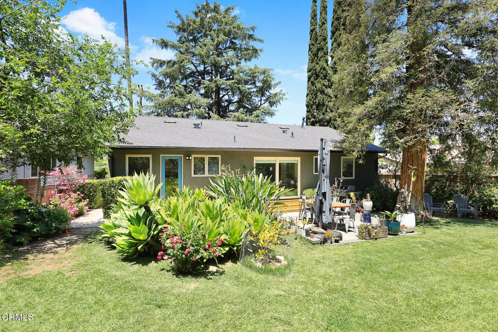 This charming California residence sits on a quiet, tree-lined street in Sunland, blending classic curb appeal with extensive modern upgrades. Surrounded by mature trees and drought-tolerant landscaping at every step, the home offers incredible outdoor living with a spacious front yard, an updated backyard paver patio and a lush garden featuring a fig, grapefruit, meyer lemon, and lime tree combined with supersized agave, palms, and a redwood! The front yard boasts equally vibrant landscaping with highlights being a giant diadora, palm, and a second fig tree. The yard features a smart Rachio irrigation system to optimize water care and solar lighting for the evenings.Inside, the open-concept layout seamlessly connects the living room to the updated kitchen, complete with stainless Whirlpool appliances, pull down Kraus faucet, wood cabinetry, and a breakfast bar overlooking the private backyard. Refinished hardwood floors extend throughout the living area and into two comfortable bedrooms located near a full bathroom. The majority of windows are Pella's high end wood framed dual-pane with built in blinds, and the home features central air and heat, as well as a tankless water heater, for year-round comfort.Additional recent improvements include a new roof with energy-efficient shingles, gutters, permitted seismic retrofitting, a full paver driveway, and widened front walkway with matching plant walls. A new drainage system with pipes on all four corners directs water safely to the street. Smart features include thermostat, range (stove/oven), lighting, doorbell, front door lock, flood lights, irrigation system, and overhead garage door for modern convenience. The two-car garage offers versatile potential as a home office, studio, or creative space. The backyard allows potential for expansion.Perfectly located just minutes from the freeway, nearby scenic hiking trails, local shops and cafes, this move-in-ready home offers the best of both lifestyle and convenience.