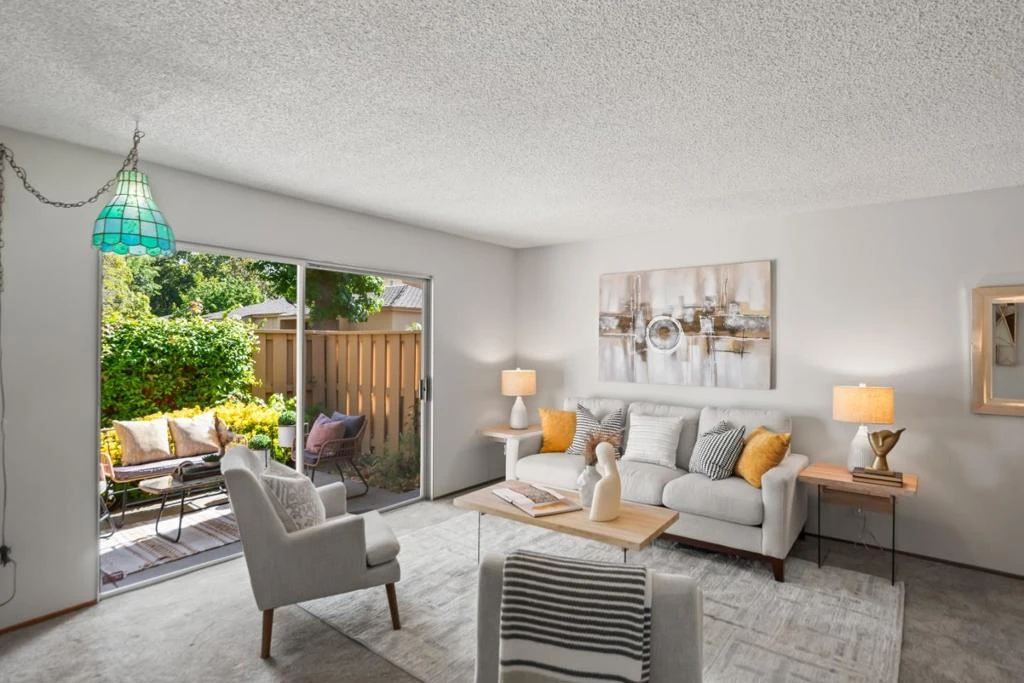 Peaceful, well-maintained home with popular mid-century modern aesthetic in highly sought-after location. Cook delicious meals in the open kitchen that includes convenient peninsula with pass-through to the dining area, making hosting a breeze. The east-facing bedrooms are very private thanks to a fence just outside. Plus, they offer maximal storage with a rare walk-in closet in the primary bedroom and dual closets in the second bedroom. Additional must-have features include in-unit washer/dryer, central A/C for climate comfort, two sun tunnels that fill the home with natural light, and convenient carport with storage. Plus, western sun is blocked by neighboring unit for added comfort. The private yard with southern exposure offers a peaceful, secluded retreat with low-maintenance design that has a sprinkler system for easy care. Outside, the unit is set far back within the complex and situated behind a tranquil lawn area. Meticulously maintained community offers lush greenbelts, clubhouse with large heated pool and lawn, and plenty of parking. Students have access to top Cupertino schools in Stocklmeir Elementary, Cupertino Middle, and Fremont High (buyer to verify)!