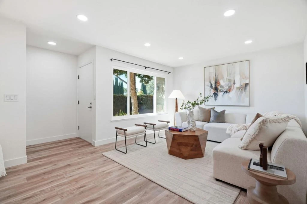Welcome to this charming and beautifully maintained 2-story townhouse in the highly desired Sunset Oaks community in Sunnyvale! Located next to top-rated schools, including Louis E. Stocklmeir Elementary, Cupertino Middle, and Fremont High. This bright and inviting 2-bedroom 2.5-bathroom home offers 1,300 sq ft of comfortable living space with a functional floor plan, including a private back patio. The spacious living room flows seamlessly into the dining area and well-appointed kitchen, which features granite slab countertops, ample cabinetry, recessed lighting, and a convenient breakfast bar. Upstairs, the primary suite includes recessed lighting and balcony access, while the second bedroom offers abundant natural light and a spacious closet. Additional highlights include an interior laundry area with storage and a large attic providing extra storage space. A private courtyard patio offers a perfect setting for outdoor relaxation or entertaining, with direct access to the detached on-car garage. Enjoy access to community amenities, including a swimming pool, sauna, and clubhouse, all surrounded by mature trees and well-maintained grounds. Conveniently located near shopping, dining, parks, and major tech campuses, including Apple, LinkedIn, and Google.