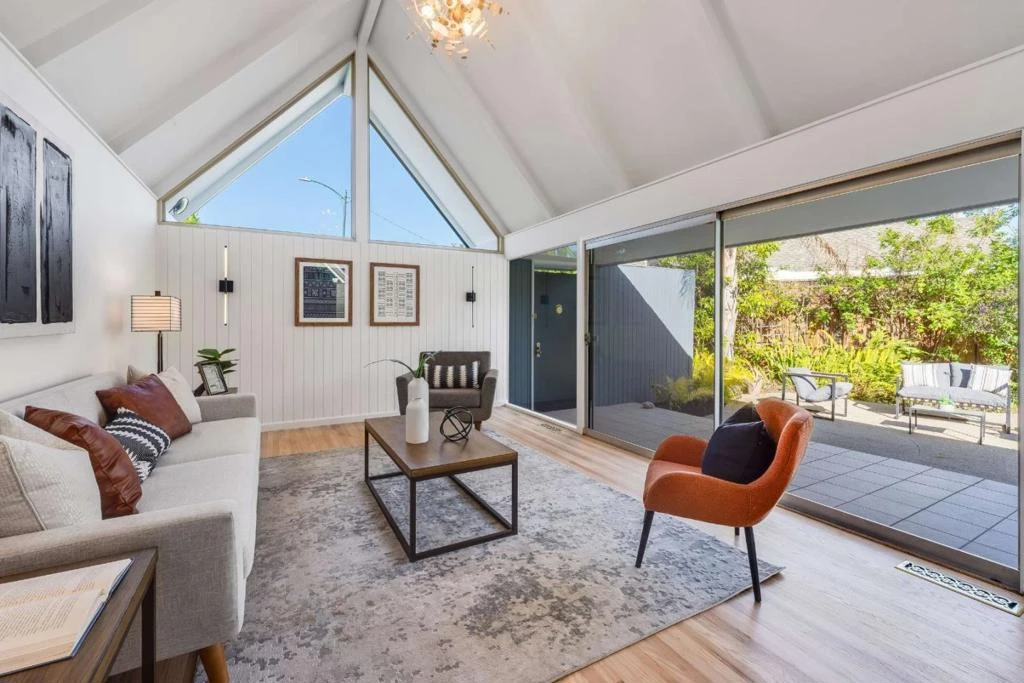 Beautifully situated on a quiet cul-de-sac, 744 Jackpine Ct presents a rare opportunity to own a fully updated mid-century modern Gavello home in the heart of Sunnyvale. Offering 4 bedrooms, 2 bathrooms, and a versatile loft across 1,973 sq ft, this home sits on an expansive 8,625 sq ft lot designed for both comfort and entertaining. Oversized windows fill the home with natural light, highlighting cathedral ceilings, a welcoming fireplace, and newly refinished oak hardwood floors throughout. The thoughtfully updated kitchen features freshly painted cabinetry, stone countertops, and stainless-steel appliances, seamlessly flowing into the family room. An enclosed atrium provides a charming bonus space for relaxing or hosting, while the private backyard showcases a sparkling pool and multiple areas to unwind. Bathrooms have been tastefully refreshed with quartz countertops, updated cabinetry, and reglazed finishes. Ideally located near Braly Park, top-rated schools, vibrant dining and shopping along El Camino Real, and major tech campuses including Apple, Google, and LinkedIn, this home also offers easy access to Lawrence and Central Expressways and highways 280, 85, and 101, perfectly balancing serenity with convenience.
