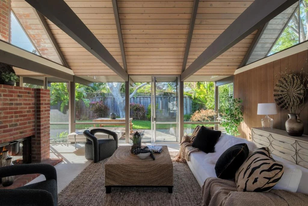 Located in the heart of Sunnyvale, this classic Eichler Atrium residence embodies the timeless appeal of mid-century modern design. The home features 4 bedrooms, 2 bathrooms, and a flexible bonus room that can easily serve as a home office or creative studio. The open-concept layout is filled with natural light and highlights the architectural elements Eichler homes are known for. Vaulted open-beam ceilings, expansive floor-to-ceiling glass, radiant heated floors, and great indoor/outdoor flow create an inviting atmosphere throughout the main living areas. The kitchen/family room preserve the homes original character while offering modern functionality: granite countertops, a kitchen island with a built-in casual dining, stainless steel appliances, and a large walk-in pantry. The primary suite offers a walk-in closet, access to the back garden and a private ensuite bath. Three additional bedrooms and a hall bath complete this fabulous floor plan. Surrounded by beautiful mature landscaping, patios and decks, inside laundry and an attached two car garage complete this move-in condition home. Conveniently located near Cumberland Elementary, Homestead High School, Las Palmas Park, Sunnyvale Library, Caltrain, major commute routes, and many of Silicon Valleys top employers.