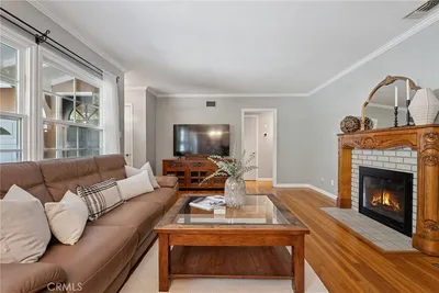 This charming single-story traditional mid-block home has been beautifully updated, boasting fantastic curb appeal and charm with its modern white exterior and inviting front porch. Inside, a bright and airy living room/dining area offers new engineered wood flooring, windows, and a clear line to the entertainer back yard. The beautifully redone kitchen highlights sleek quartz countertops, shaker cabinetry, subway tile backsplash and a large laundry area. The serene spacious primary suite features new flooring and an ensuite bathroom with designer vanity, skylight and walk in shower. Two additional bedrooms, plus bonus room, offer versatility for guests, family, or a home office. The second bathroom has a deep tub, stylish vanity, designer tile flooring, and storage. The private backyard oasis includes a spacious paved patio, an over-sized pool, greenery, and a detached garage/gated driveway. Located in a highly desirable neighborhood near parks, schools, shopping, and dining, this stunning home seamlessly blends modern updates with a neighborhood aesthetic. Great price, will sell quickly! Seller will finance, details in docs.