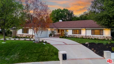 Rare Opportunity in Prime Tarzana Location! Nestled south of the boulevard in the highly sought-after Tarzana hills, this sprawling 6-bedroom, 5-bathroom home rests on an expansive 21,618 sq/ft lot, offering unparalleled privacy and tranquility. Embracing a unique southwest style, this residence boasts abundant character and a indoor-outdoor layout centered around a sparkling pool and sprawling garden oasis.The main level features a spacious open floor plan with soaring wood beam ceilings, wide plank oak hardwood floors, and numerous skylights, creating a bright and inviting atmosphere.The kitchen is bathed in ample natural light from both the skylight and numerous windows. It boasts a center island with a gas cooktop, walk-in pantry, custom cabinets, a double oven, and a dishwasher. The oversized primary suite is a true retreat with a wood-burning fireplace, french doors leading to the pool area, a substantial walk-in closet, and a large primary bath featuring a soaking tub. In addition to the primary suite, the main level hosts five additional bedrooms, three of which include private bathrooms, providing ample space for family and guests. Multiple French doors throughout the home seamlessly connect indoor living spaces to the enchanting garden, patios, and pool.The second floor is dedicated to a versatile space ideal for a home office, studio, or family room, offering access to a covered balcony with sweeping views of the entire property.Privately accessed via a secluded road, this unique property exudes exclusivity and serenity. The backyard is a picturesque oasis adorned with mature landscaping, tranquil koi ponds, and peaceful sitting areas, perfect for relaxation and entertaining alike.Don't miss this extraordinary opportunity to create your dream home in Tarzana's most coveted neighborhood. Photos have been virtually staged.