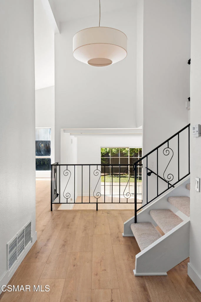 Tucked into one of Tarzana's most desirable neighborhoods, this fully transformed 4-bedroom, 3-bath home offers 2,273 square feet of thoughtfully updated living space--designed for real life, real gatherings, and the next chapter.From the moment you arrive, the deep navy mid-century exterior, chrome house numbers, and statement lighting set the tone. The double front doors open to soaring ceilings and dramatic West Elm lantern fixtures that immediately anchor the space with warmth and intention.Inside, the home unfolds with a clean, modern aesthetic layered over its natural 70's architecture. Acoustic ceilings have been smoothed. The entire interior and exterior have been freshly painted. New luxury European laminate flooring grounds the main living areas, while plush new carpet adds comfort upstairs. Modern baseboards run throughout the home, giving every room a crisp, finished feel. A brand-new roof and HVAC system bring peace of mind that goes far beyond cosmetics.The formal living room features high ceilings and a reimagined fireplace with a custom West Elm mantel--now a true focal point and an inviting place to gather. Recessed lighting brightens the space and enhances the open flow between living and dining.The kitchen blends function and personality. Freshly painted cabinetry with new wood hardware, a new sink, faucet, and dishwasher, and glazed countertops create a clean foundation. A custom-built bench upholstered in luxe fabric turns the dine-in area into the spot for weekday breakfasts, homework sessions, and casual dinners. Just beyond, the formal dining room--with its new statement fixture--is ready for holidays and celebrations.The layout offers flexibility that modern families need. A main-floor bedroom and full bath provide the perfect setup for guests, a home office, or extended family.Upstairs, you'll find the private sleeping quarters: the primary suite along with two additional bedrooms. All three bedrooms feature new carpet, modern baseboards, and high-tech ceiling fans with customizable settings and lighting temperature for personalized comfort. The result is simple, clean, and move-in ready--spaces that feel fresh now but flexible enough to evolve as life changes.All three bathrooms have been completely gutted and rebuilt with modern tile showers, updated vanities, new plumbing fixtures, and sleek sliding glass doors. The primary bath leans sophisticated with darker grout and elevated finishes. The hall bath brings a playful, youthful energy--fresh, functional, and designed with family living in mind.Step outside and the backyard delivers what so many families are looking for--usable space. A patio built for outdoor dining, a large shade tree that makes afternoons comfortable, and a versatile rock lounge area ideal for a fire pit, play space, or evening entertaining. Fresh planters and a newly painted block wall enclose the yard, creating privacy and warmth.Nearly every surface has been updated or replaced. The result is a clean, modern home that honors its mid-century roots while offering today's convenience. It's move-in ready, yet neutral enough to layer in your own art, furniture, and personality.This is the kind of home where birthday candles are blown out in the dining room, kids run between the family room and backyard, and friends linger long after dinner.In Tarzana, fully updated, with this kind of space and flow--it's not just a remodel. It's a reset.