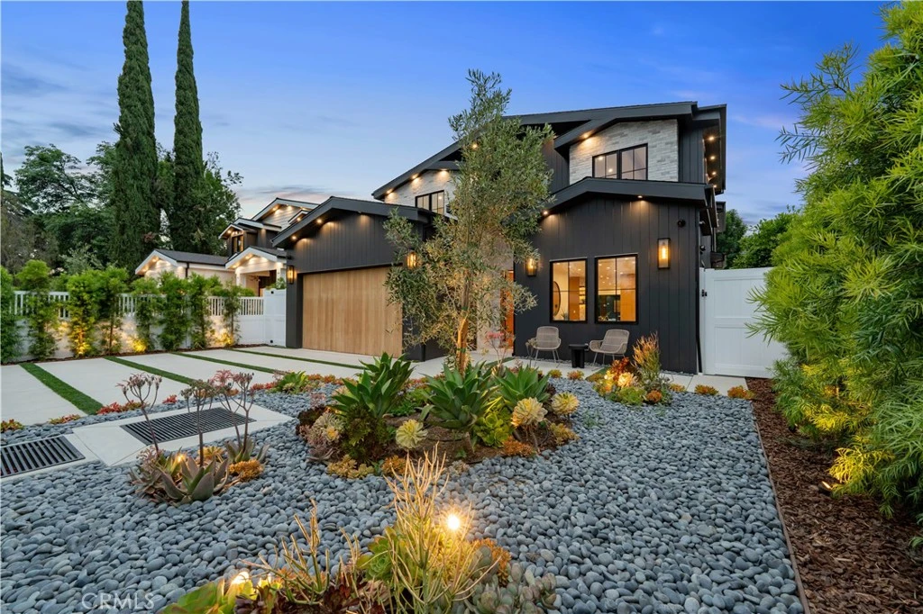 Private and gated in the heart of Tarzana, this incredible estate offers five spacious en-suite bedrooms and five-and-a-half bathrooms. This stunning new construction is adorned with white oak floors and chevron finishes throughout. The family room, with exquisite woodwork and a fireplace, provides a cozy yet elegant space for relaxation. Fleetwood pocket doors open to the backyard, seamlessly blending indoor and outdoor living. The chef’s kitchen showcases Italian walnut custom cabinets, sleek Porcelain Travertine countertops, and top-of-the-line Thermador appliances. Each room is en-suite, and the primary suite features a stunning walk-in closet and spa-like bathroom. Outside, the heated saltwater pool and outdoor BBQ area are ideal for entertaining guests and al fresco dining. Detached ADU provides exceptional guest or staff quarters, complete with one bedroom, one bathroom, and a cozy living room. This home is equipped with a temperature-controlled wine cellar, solar paneling, and state-of-the-art smart home technology, promoting energy efficiency and sustainability. Every detail in this home has been meticulously crafted, including lighting fixtures and custom closets with LED lighting. Situated in the prestigious neighborhood of Tarzana, this home offers privacy with lush landscaping and hedging. Experience everything Tarzana has to offer, located near fine dining, Topanga mall, Topanga Village, parks, schools, and coming soon Trader Joe's market. This home offers both convenience and elegance.