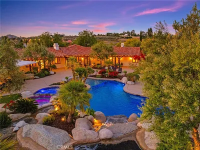 Beautiful Chaparral Estates compound on 2.5 acres, with 2 homes and 9 car garage! Full-grown mature trees and landscape give this enclave the privacy feel of a far away country estate, but with the perfect central location in town. At approx 3000 sq ft, the single story main house is a traditional ranch style oozing with character and charm. Extensive millwork includes custom crown, door and window casing, with generous baseboards that display our owners' skilled craftsmanship. Its modern details include LED can lighting, nest thermostats, tankless water heater, and bidet toilet seats. It has 4 bedrooms (one currently used as a walk-in closet) and 3 full baths. Private office off of the entry. Living, family and dining room are large and inviting with vaulted and beamed ceilings. The gourmet kitchen has distinctive black walnut cabinetry, elegant granite countertops and built-in appliances. Easy care, pet-friendly tile floors throughout the home. Outside is an entertainers paradise! Beautifully laid out grounds include mature fruit trees, sweeping lush lawns, with picnic gazebos and playground. There is even a chicken coop and dog run. Brick pavered patio has both a gas fireplace and firepit. With built-in BBQ ready to host any size of gathering! The pool/spa area was just updated with new pebble tech surfacing, pool equipment, gazebo, fireplace, concrete pavers, and fully enclosed. The oversized guest house is approx 1850 sq ft with 3 bedrooms, 2 1/2 baths, kitchen, living room, laundry hookups and office. Loads of storage too!! Need garage space for all the toys? You’ll love the 3 car attached garage with built-in storage, workbenches and washer/dryer, BUT you’ll go crazy over the separate garage building with 6 additional spaces, including 2 RV bays with full 30 amp hook-ups. (1) Interior 2-post hydraulic 9000 lb lift, and (1) interior 4-post hydraulic 7500 lb lift and (1) Exterior 2-post hydraulic 10,000 lb lift. Property has 400 amp panel and 2 separate septic systems. All buildings have new exterior paint and James Hardie concrete siding for fire-resistance. Plus no HOA and low property taxes! Situated between Temecula wine country and old town, with nearby shopping and award winning schools. See amenities supplement for full details.