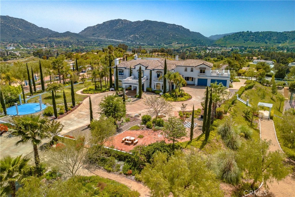 ****SIMPLY THE MOST AMAZING PROPERTY WITHIN THE CITY OF TEMECULA!! This Resort-Like custom colonial Spanish Mediterranean property located in the prestigious Chaparral/Santiago Estates is for the people who want it all. Be King of the Hill! The possibilities for this site are endless... Corporate Retreat, potential Bed and Breakfast or multi-generational Family Compound. 15 acres of amazing privacy with gorgeous 360 degree views, fabulous sunsets, city lights, snow capped mountains, the entire valley at your feet. Main house is approx. 6,747sf, Guest house 915sf plus art studio/ workshop, Pool Casita 709sf, plus multiple entertaining rooms on property, and exquisite gardens, raised vegetable garden, and numerous fruit trees. Lighted Tennis Court, basketball, sand volleyball, pickle ball, horseshoes, 76 foot Bocce Ball court/ horse corral, planted vineyard. Numerous outdoor entertaining areas. Main house has 6 full en-suite bedrooms plus office, four car garage. Unique triangular concrete garden with balustrades for lavish parties and get togethers. Best of all, this property is located in the heart of town, close to Old Town, freeway, schools, Pechanga, shopping. Wonderful chef's kitchen with large island, dual sinks, seated bar, new 8 burner Viking Stove with griddle, double ovens w pot filler, Thermador with double ovens, warming tray, Sub zero Refrigerator, 2 Bosch dishwashers. Coffee area/ butler's pantry/ walk in pantry. Gigantic master bedroom deluxe suite with fireplace, and the largest closet rooms you've ever seen! This place is built for entertaining at a large scale or intimate gathering. You, your family and your guests will feel like you're on vacation all the time. There is so much to offer, that once you enter the gates, you'll never want to leave. Your annual 4th of July party will be your grand soiree as you see fireworks all around from your private enclave on the top of the world here in Temecula! The house has been professionally decorated and is a complete showpiece with no expense spared. One of the best features is the secret interior courtyard in the center of the house which adds natural light throughout. Once you drive up the winding driveway to the Porte-Cochere and open the ornate entry doors and see the beautiful tropical mural hand painted by a local artist, you'll know that you've ARRIVED! These opportunities don't come up often, so don't miss out! This is truly a one of a kind property in Temecula.