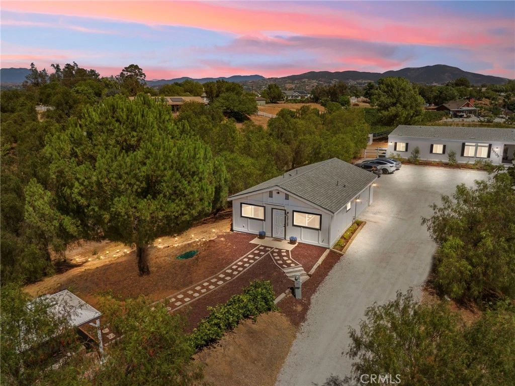PRICE IMPROVEMENT!! LOCATION, LOCATION, LOCATION! Welcome to Wild Oak Ranch in the heart of Wine Country! This nearly 5 ACRE PROPERTY offers an ALMOST NEW and well-appointed 4 BD-2 BA SINGLE STORY home w/ detached 2 CAR GARAGE with epoxy floors + a beautifully renovated GUEST UNIT complete with stackable washer and dryer space. Enjoy breathtaking VIEWS from nearly every window in this wine country farmhouse property featuring a 100% USEABLE lot w/ FLAT LAND, mature landscape, tree-lined drive, new vinyl fencing, 2 Gazebos & much more! There is plenty of room to build an additional DREAM HOME! 2 flat pads offer areas for WORKSHOP & RV-TRAILER-BOAT PARKING, 2nd ARENA, or PASTURE. My fellow horse enthusiasts will appreciate the Beautiful HORSE FACILITIES including 2 stall BREEZEWAY BARN w/ turnouts, 5 STALL covered barn with automatic waterers, a spacious tack room, wash racks, hay shed, large turnout paddocks & an oversized white rose bush lined arena complete with a masonry sand/artificial footing mixture and an irrigation system. There is also a beautiful 3/4 Acre olive and citrus grove with white rose bushes making it a perfect venue for hosting family events, weddings, etc. EQUESTRIAN PROPERTY INCOME POTENTIAL including CARETAKERS QUARTERS. Both the main house and the studio guest apartment are UPGRADED and almost new, with designer kitchens with Corian and granite counters, luxury full-height backsplashes, stainless gas appliances, luxury vinyl plank throughout (no carpet anywhere), individual septic tanks and spectacular wine country views through the oversized windows overlooking the rolling hills and vineyards. Large indoor laundry room/mud room with exterior access door & low maintenance back yard w/ calming waterfall & potential Koi Pond. All this w/ low taxes, NO HOA, AirBNB Potential & access to local horse trails. Just five minutes from Galway Downs Equestrian Center! HURRY before this one is gone! Buyer to verify all.