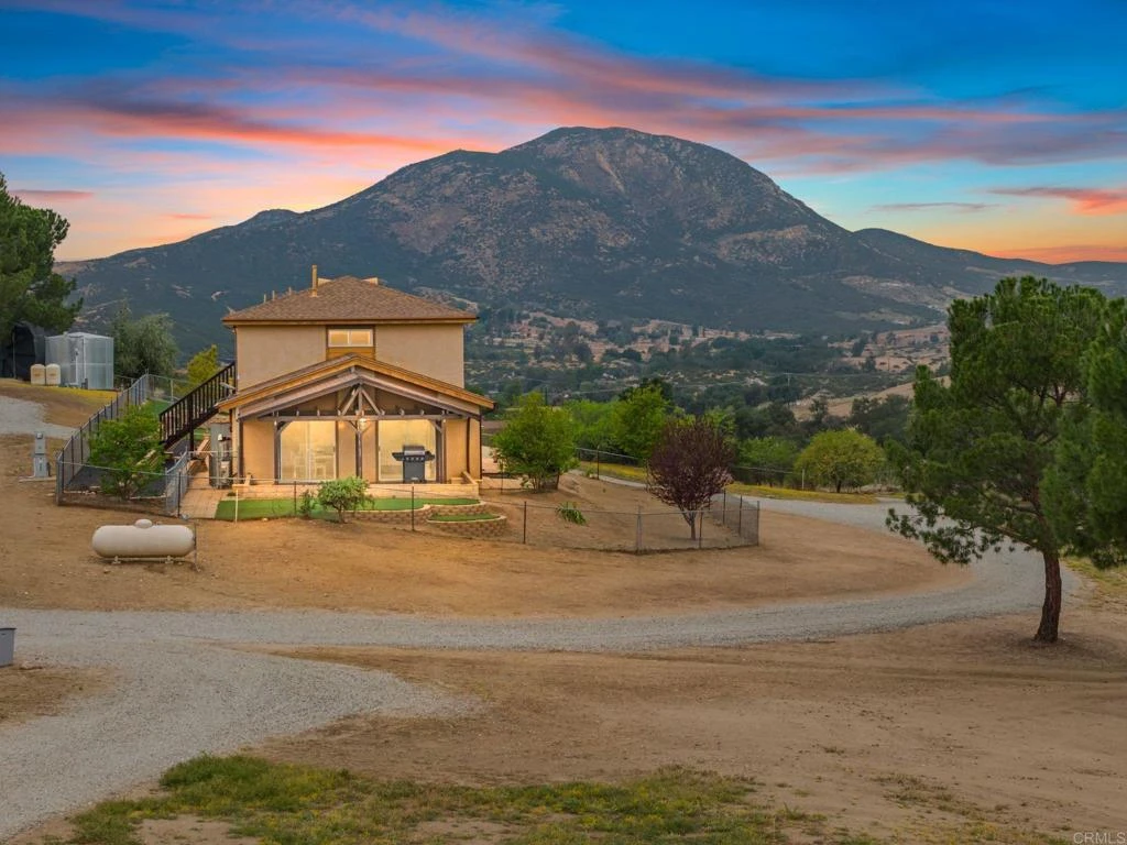 Enjoy captivating hilltop views in the heart of Temecula wine country at this serene homestead nestled on a sprawling 4.56-acre lot. With 3 independent living spaces and an RV spot with septic and utilities, this property is ideal for those seeking a private, peaceful & spacious retreat or wonderful income potential. The main house, recently renovated, features a single level, open concept space with a combined living room/kitchen/dining room and hallway with a large linen closet, full bathroom and 2 bedrooms. Upstairs is a picturesque newly improved 1 bedroom/ 1 bathroom apartment with separate entrance and parking—perfect for guests or rental income. A large fenced in yard with turf, shed and large-scale tiered garden with brand new irrigation are ready for your DIY dreams right outside your door. A covered patio with brand new roof is the perfect setting to enjoy your property in all its splendor. Buried utilities allow you to enjoy 360 degree views. Just a few steps away from the main home is your own private fenced in irrigated orchard with 18 trees offering a delightful array of apples, peaches, lemons, limes, oranges, cherries, olives and avocados—ideal for the hobby gardener or fruit enthusiast. A short walk away is the recently fully renovated 12'x36' studio style casita with a full kitchen and bathroom, offering bonus living space or rental potential. With ample space and a myriad of upgrades all less than 2 years old, this self-sufficient Temecula estate is not just a home—it is a way of life. Whether you’re looking to settle down, expand, or invest, 39260 Grassy Road provides endless possibilities. Don't miss out on this unique opportunity!