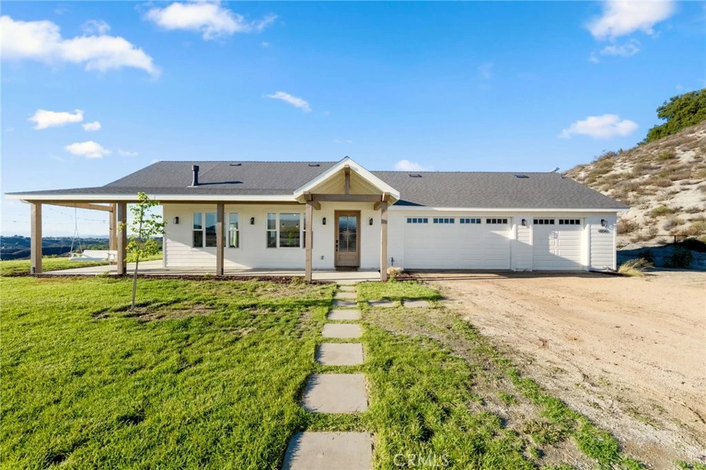Experience the charm of country life in this custom single story modern farmhouse set on 10 acres with panoramic views in the heart of Temecula Wine Country. Built just three years ago, this home blends timeless farmhouse design with contemporary comfort and sustainable, off grid living. From its inviting wraparound porch to its vaulted ceilings and warm white wood interior, every detail reflects quality and craftsmanship. The open floor plan welcomes abundant natural light and showcases sweeping vineyard valley views from the main living areas. The chef’s kitchen is a showstopper featuring a 48” cooktop, double ovens, farmhouse sink, walk in pantry, and an oversized quartz topped island perfect for entertaining. The living and dining areas flow seamlessly together, anchored by a cozy fireplace and plenty of room for gatherings. The primary suite offers private exterior access, breathtaking views, and its own fireplace. A spa style bath includes a soaking tub, walk in shower, dual vanities, and a spacious walk in closet. Three additional bedrooms, two full baths, a home office or flex room, and a large laundry room complete the thoughtful layout. An attached oversized three car garage with pull through design provides ample space for vehicles, RVs, and recreational equipment. Designed for energy independence, the home features 44 solar panels, 2 batteries, 3 inverters and a backup generator, allowing for true off grid capability. For added versatility or investment potential, the property includes a 680 sq ft ADU with two 1 bed, 1 bath units, each with its own kitchen, living area, and private entrance. Perfect for extended family, guests or rental income opportunities. With no HOA, there’s room to bring animals, add a pool, barn, or workshop. The options are endless. Just minutes from Temecula’s wineries, shopping, dining, and top schools, this property delivers the best of both worlds: peaceful Wine Country living with modern convenience. Discover your forever home and experience sustainable country living at its finest.