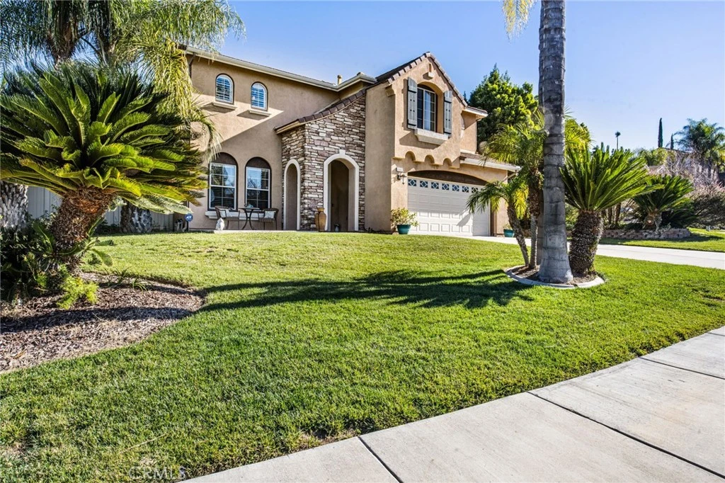 Welcome to this exceptional South Temecula pool home located in the desirable Community of Redhawk! Situated on a quiet cul-de-sac, this impressive two-story residence offers outstanding curb appeal, a spacious open floor plan, and a resort-style backyard designed for entertaining. The home features four bedrooms, an upstairs loft, and an open-concept kitchen and family room. Upon entry, you’re greeted by a beautifully appointed den/office and a formal dining area enhanced with custom-built-in cabinetry. The kitchen is a chef’s delight, showcasing a large center island, upgraded white cabinetry, granite countertops, a 5-burner cooktop, double ovens, and a walk-in pantry. The adjoining family room, complete with a cozy fireplace, provides the perfect space for relaxing or gathering with loved ones. Upstairs, you’ll find a generous loft, four well-sized bedrooms, and a convenient laundry room with ample cabinetry. The oversized primary suite opens to a private deck where you can take in sweeping panoramic mountain views and enjoy watching hot air balloons drift over Temecula Wine Country. The primary en-suite bath features dual vanities and a luxurious jetted soaking tub. Upgrades throughout the home include fresh paint, raised baseboards, custom stair railings, a Quiet Cool whole-house fan, and a reverse osmosis water filtration system. Additional highlights include a three-car tandem garage and rain gutters. The expansive backyard is truly a showstopper, offering a sparkling pool with a raised spa, BBQ area, fire pit, and plenty of space for outdoor entertaining. A new pool heater and pump were recently installed, making this backyard ready for year-round enjoyment. Located within the highly sought-after Temecula Valley School District and Great Oak High School boundaries, this home is just minutes from shopping, dining, entertainment, championship golf courses, Temecula Wine Country, and Old Town Temecula. This exceptional home is a must-see and belongs at the top of your list.